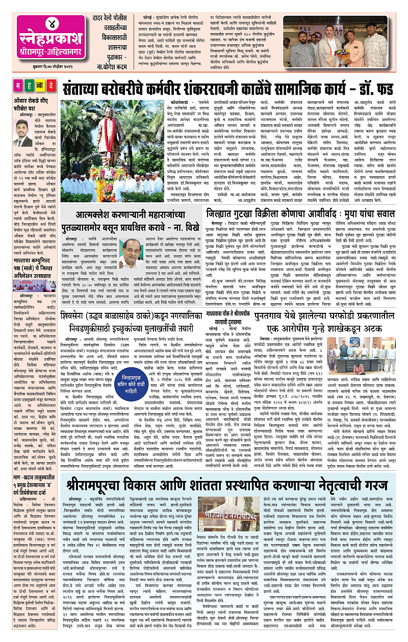 Daily Snehprakash (Marathi) Page: 4 November 07, 2025 Ahilyanagar-Pune-Nashik-shrirampur maharashtra 1 2 3 4 Page 1Page 2Page 3Page 4 × Daily Snehprakash (Marathi) 1-4 colour1-4 colour21-4 colour31-4 colour4 << First << 4 >> Last >> Page no 1Page no 2Page no 3Page no 4