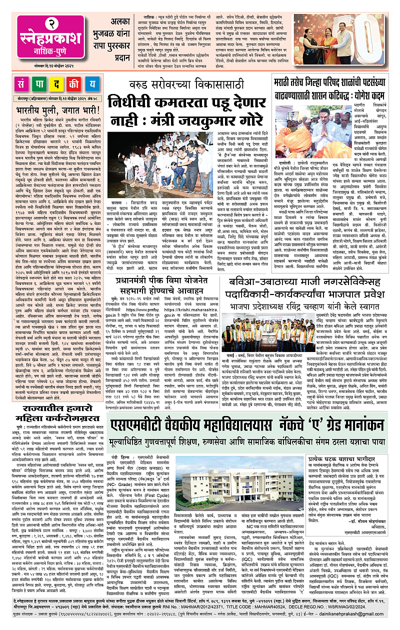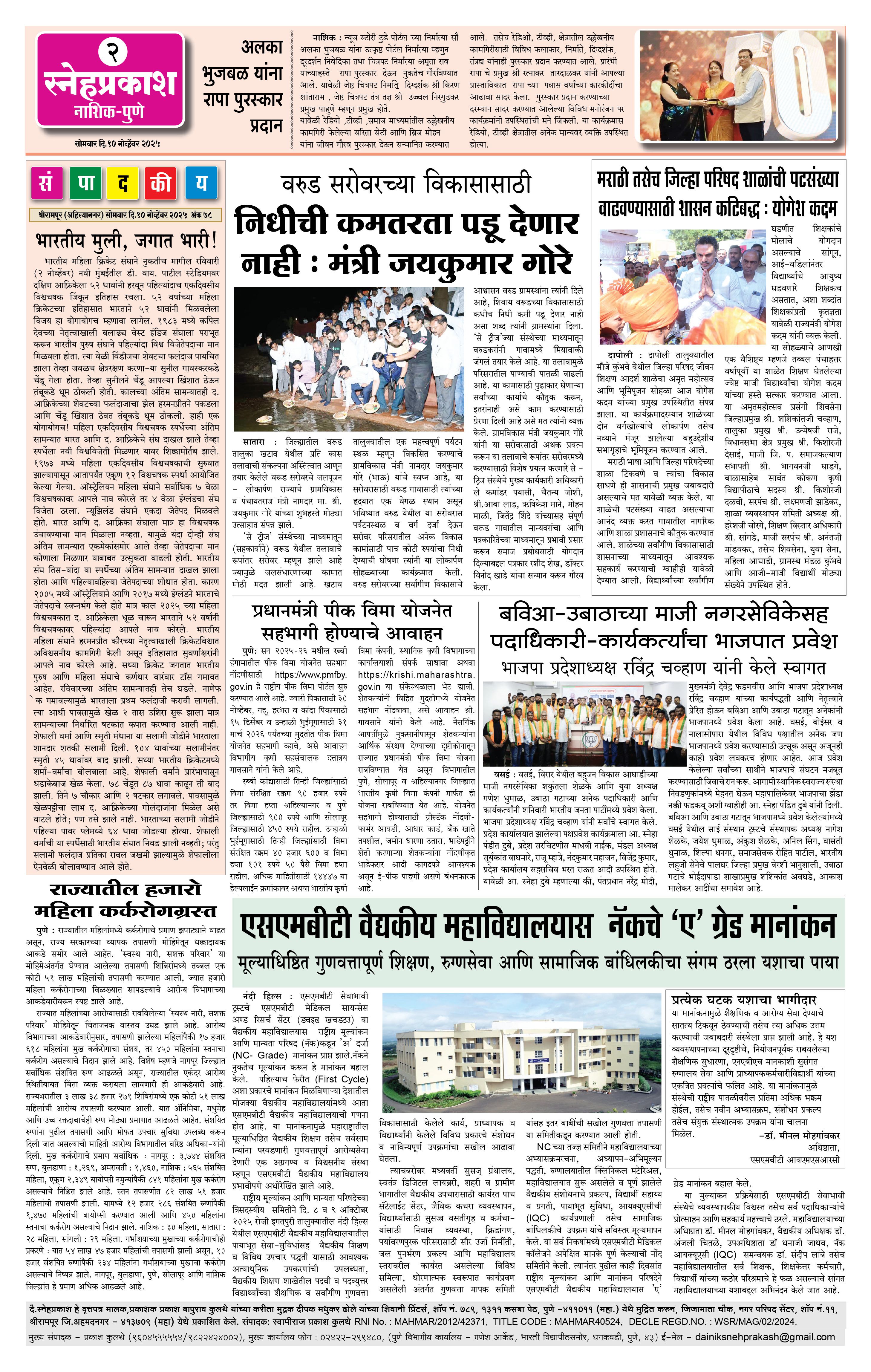 Daily Snehprakash (Marathi) Page: 2 November 10, 2025 Ahilyanagar-Pune-Nashik-shrirampur maharashtra 1 2 3 4 Page 1Page 2Page 3Page 4 × Daily Snehprakash (Marathi) 1-41-421-431-44 << First << 2 >> Last >> Page no 1Page no 2Page no 3Page no 4