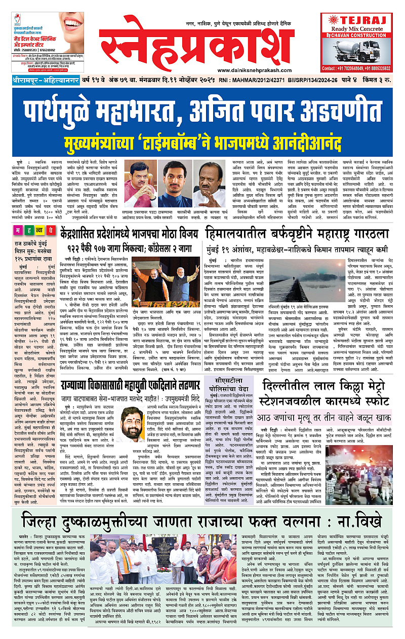 Daily Snehprakash (Marathi) November 11, 2025 Ahilyanagar-Pune-Nashik-shrirampur maharashtra 1 2 3 4 Page 1Page 2Page 3Page 4 × Daily Snehprakash (Marathi) 1-4 colour1-4 colour21-4 colour31-4 colour4 << First << 1 >> Last >> Page no 1Page no 2Page no 3Page no 4