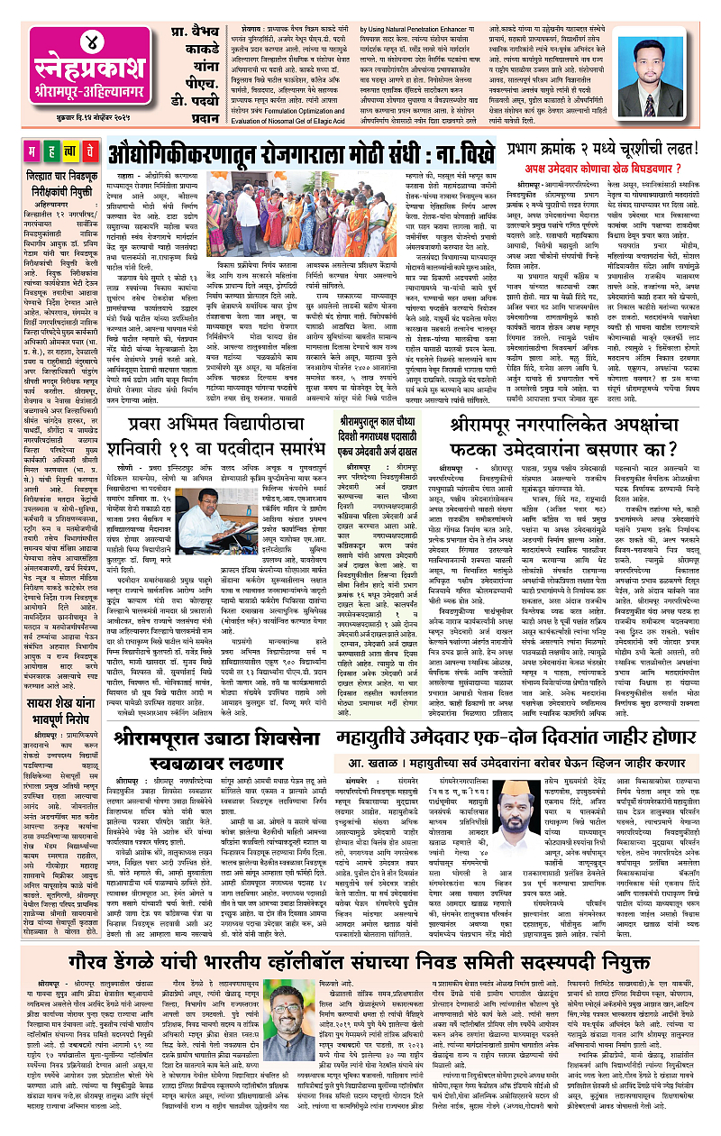 Daily Snehprakash (Marathi) Page: 4 November 14, 2025 Ahilyanagar-Pune-Nashik-shrirampur maharashtra 1 2 3 4 Page 1Page 2Page 3Page 4 × Daily Snehprakash (Marathi) 1-41-421-431-44 << First << 4 >> Last >> Page no 1Page no 2Page no 3Page no 4