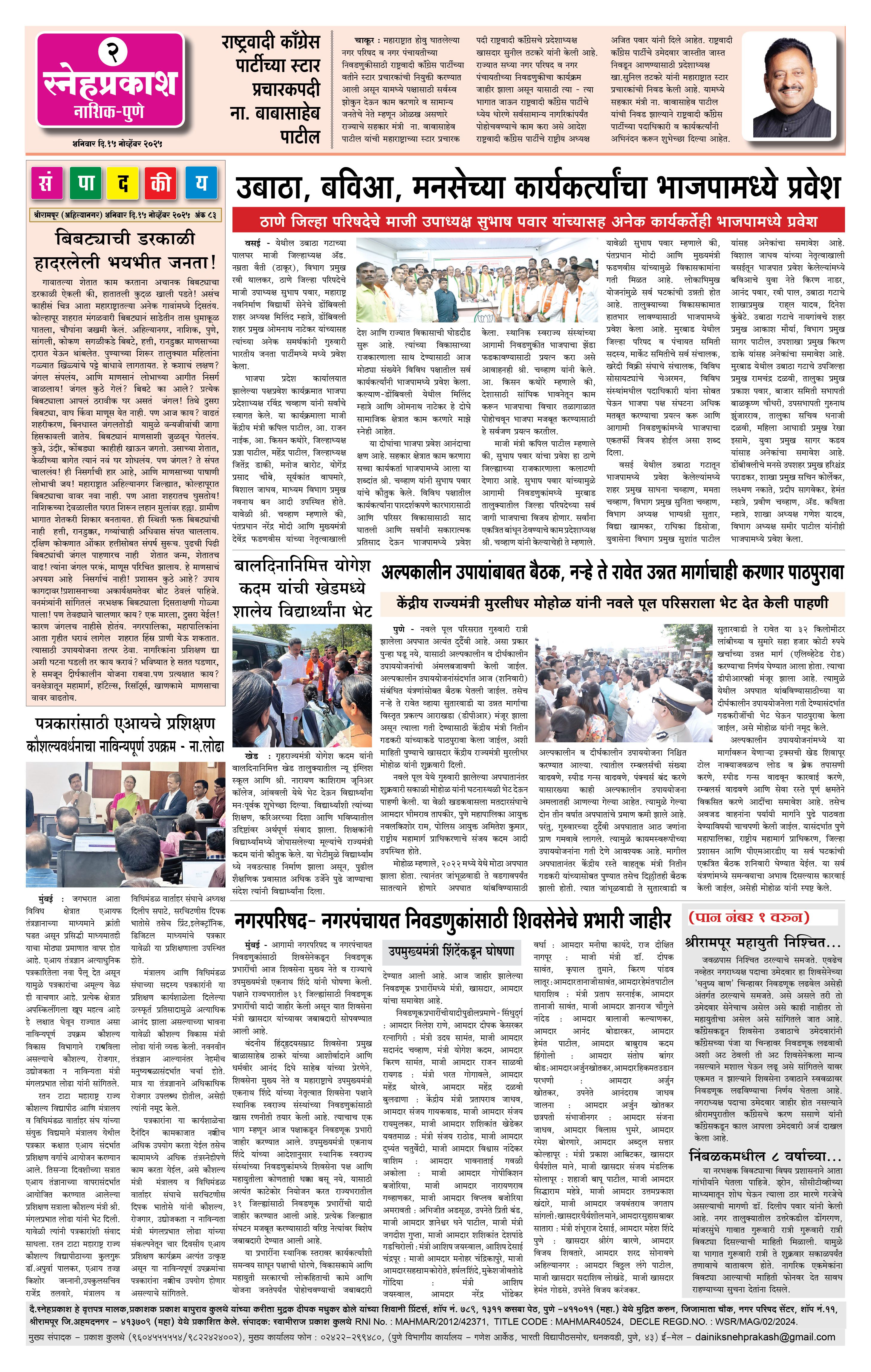 Daily Snehprakash (Marathi) Page: 2 November 15, 2025 Ahilyanagar-Pune-Nashik-shrirampur maharashtra 1 2 3 4 Page 1Page 2Page 3Page 4 × Daily Snehprakash (Marathi) 1-41-421-431-44 << First << 2 >> Last >> Page no 1Page no 2Page no 3Page no 4