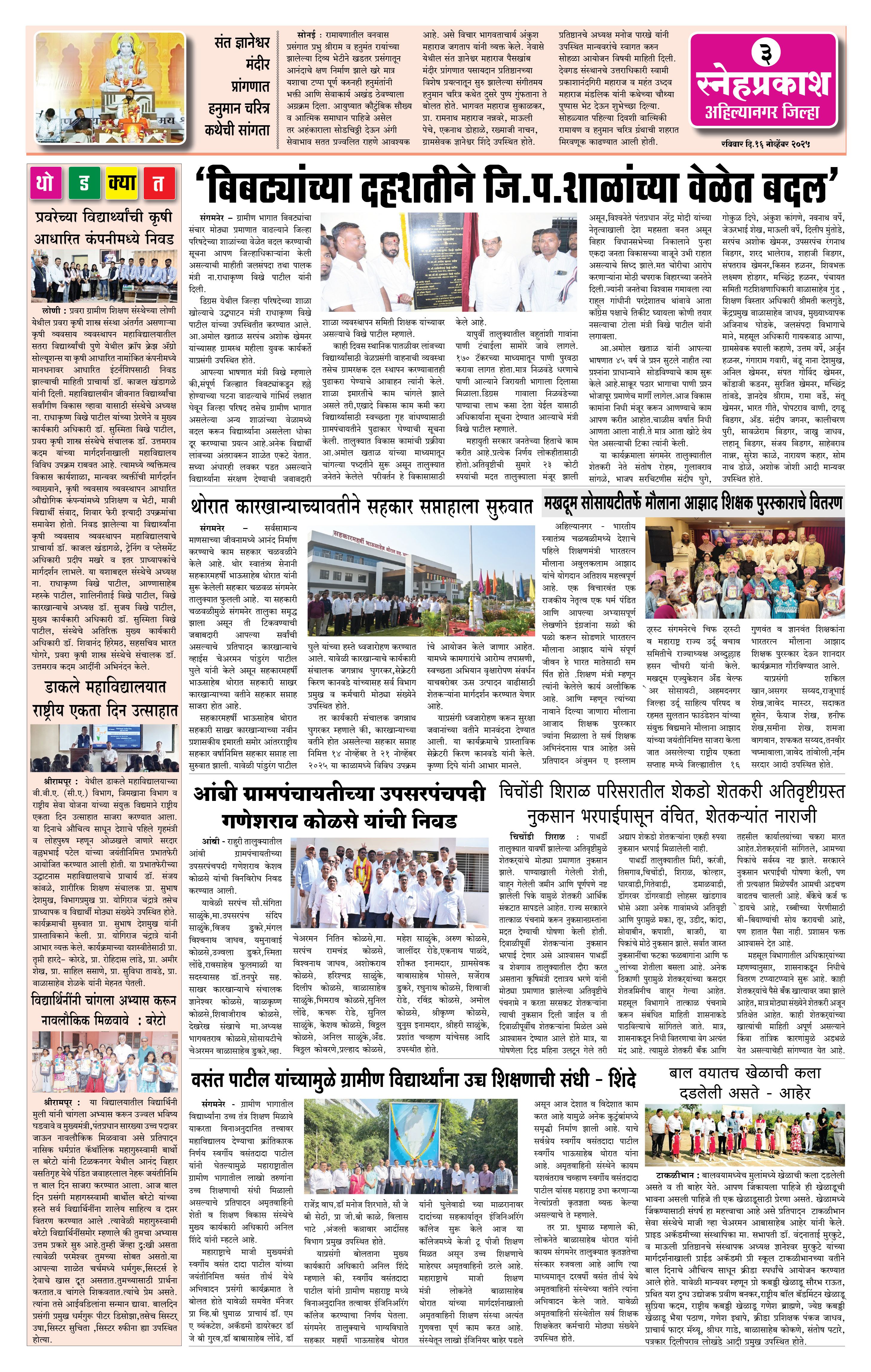 Daily Snehprakash (Marathi) Page: 3 November 16, 2025 Ahilyanagar-Pune-Nashik-shrirampur maharashtra 1 2 3 4 Page 1Page 2Page 3Page 4 × Daily Snehprakash (Marathi) 1-41-421-431-44 << First << 3 >> Last >> Page no 1Page no 2Page no 3Page no 4