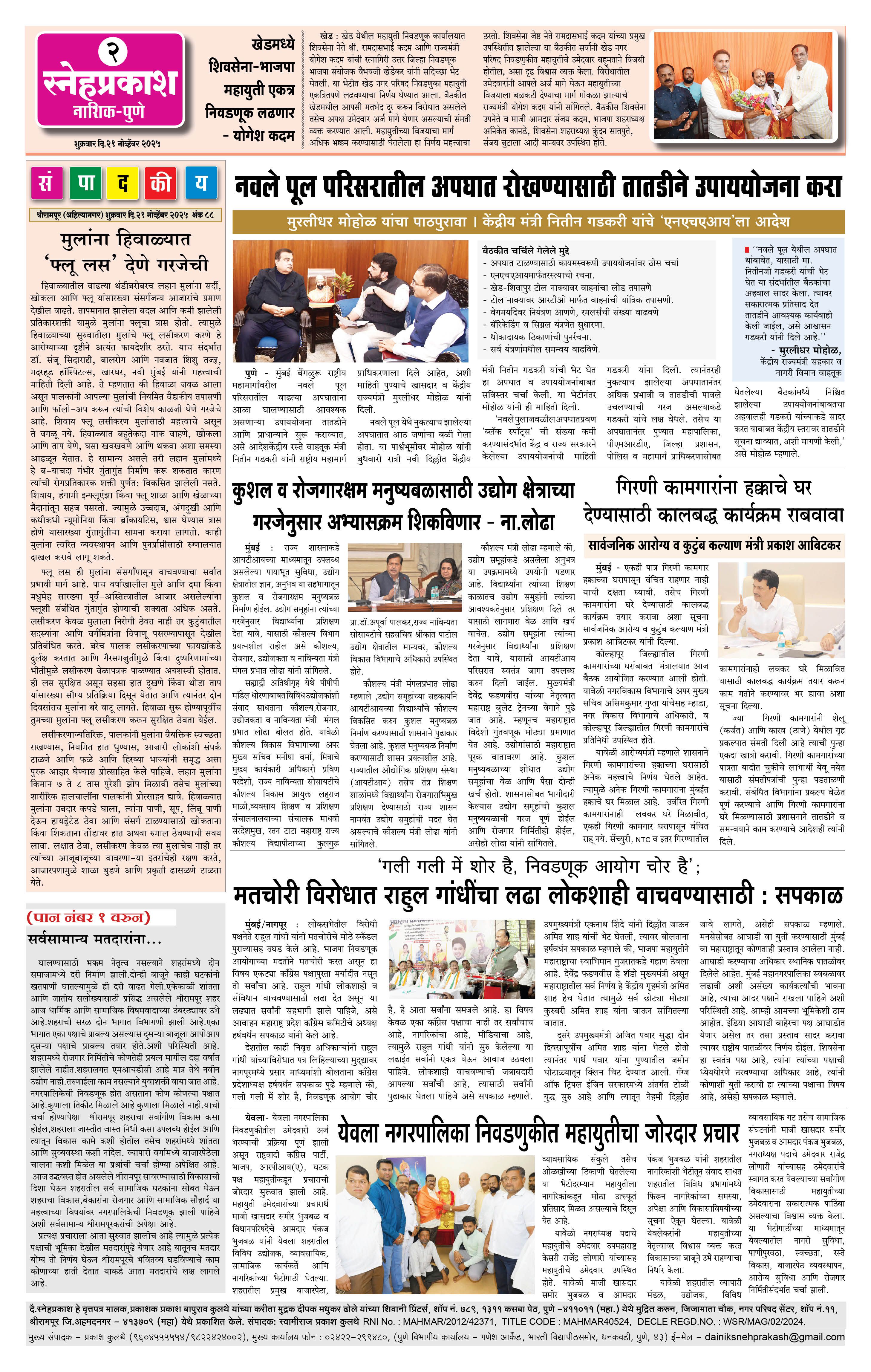Daily Snehprakash (Marathi) Page: 2 November 21, 2025 Ahilyanagar-Pune-Nashik-shrirampur maharashtra 1 2 3 4 Page 1Page 2Page 3Page 4 × Daily Snehprakash (Marathi) 1-11-121-131-14 << First << 2 >> Last >> Page no 1Page no 2Page no 3Page no 4