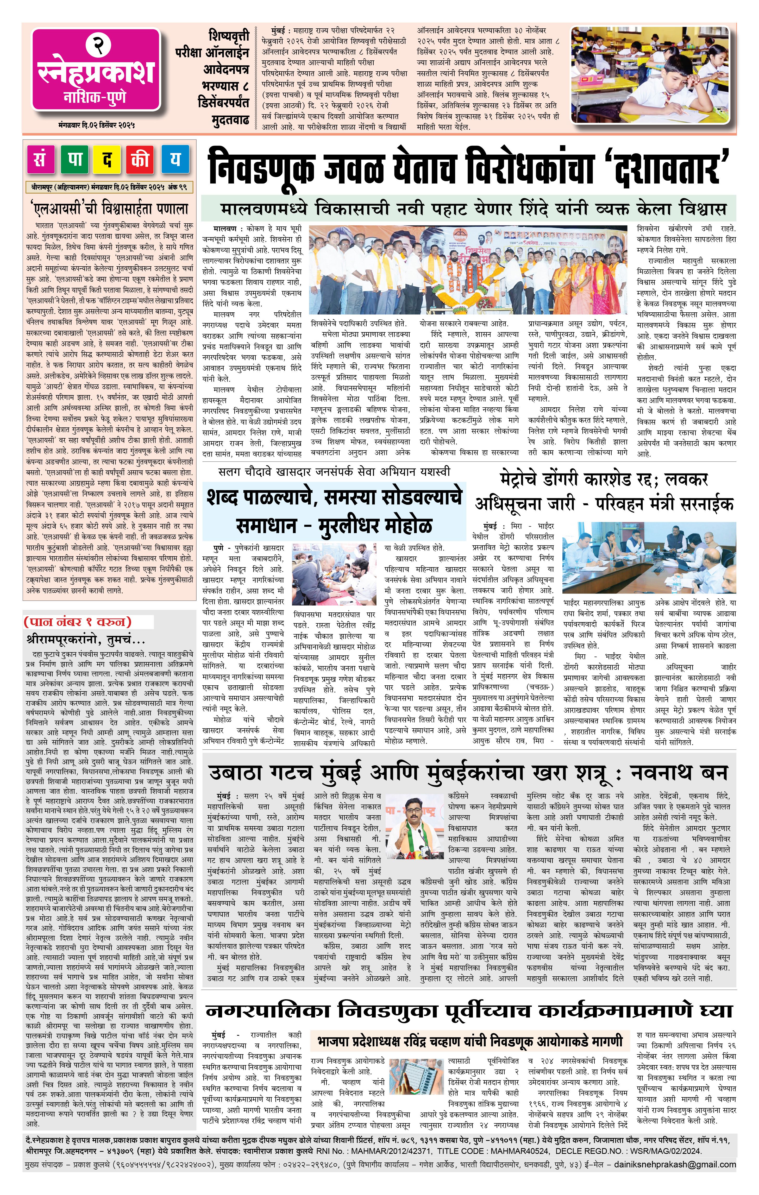 Daily Snehprakash (Marathi) Page: 2 December 02, 2025 ahilyanagar-pune-nashik-shrirampur-maharashtra 1 2 3 4 Page 1Page 2Page 3Page 4 × Daily Snehprakash (Marathi) 4424344 << First << 2 >> Last >> Page no 1Page no 2Page no 3Page no 4