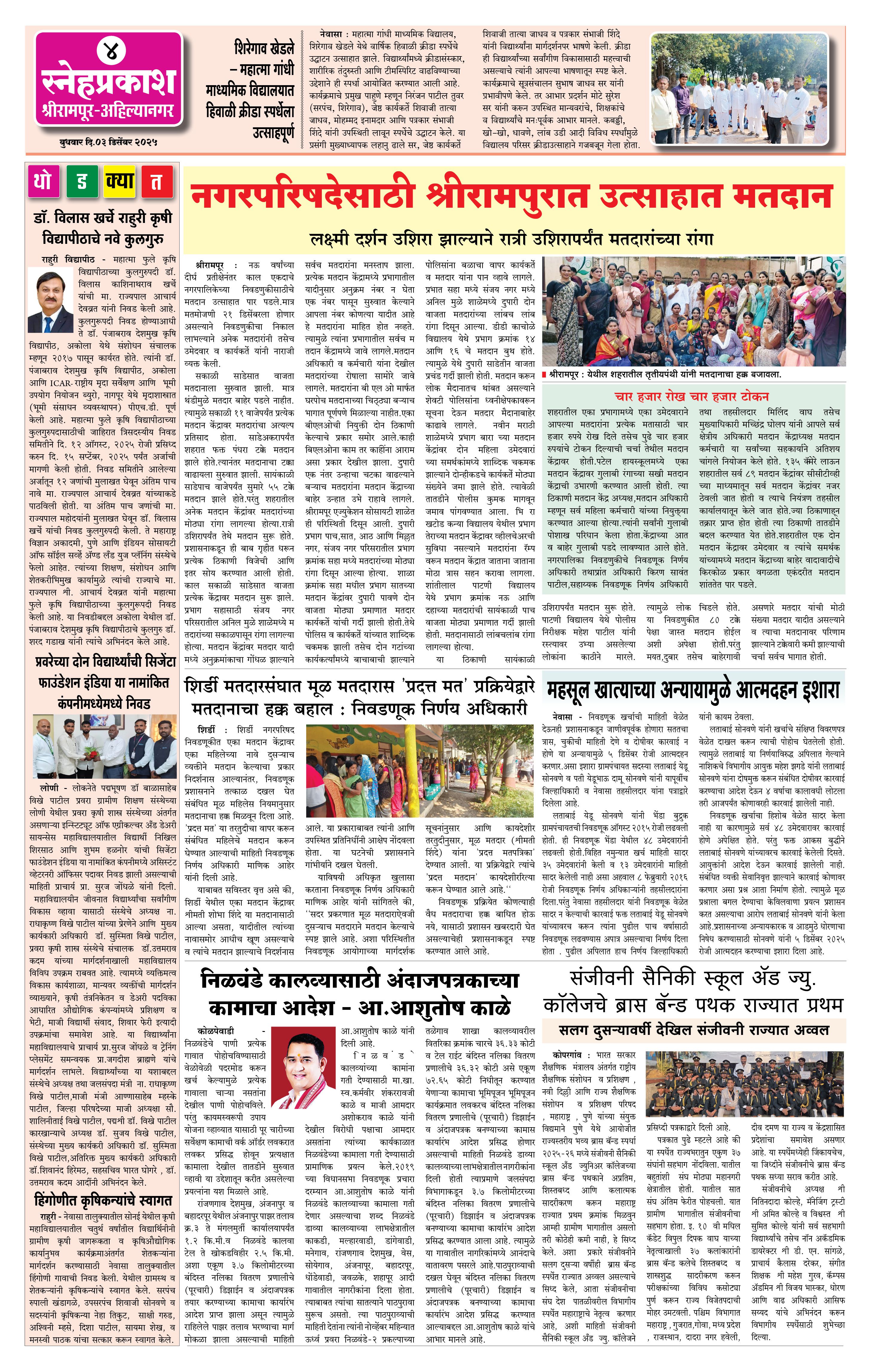 Daily Snehprakash (Marathi) Page: 4 December 03, 2025 ahilyanagar-pune-nashik-shrirampur-maharashtra 1 2 3 4 Page 1Page 2Page 3Page 4 × Daily Snehprakash (Marathi) 4424344 << First << 4 >> Last >> Page no 1Page no 2Page no 3Page no 4