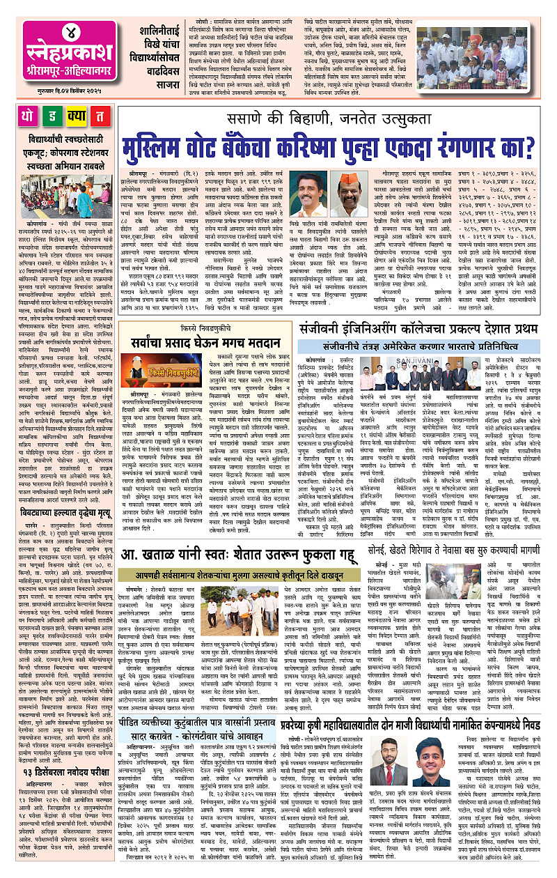 Daily Snehprakash (Marathi) Page: 4 December 04, 2025 Ahilyanagar-Pune-Nashik-shrirampur maharashtra 1 2 3 4 Page 1Page 2Page 3Page 4 × Daily Snehprakash (Marathi) 4424344 << First << 4 >> Last >> Page no 1Page no 2Page no 3Page no 4