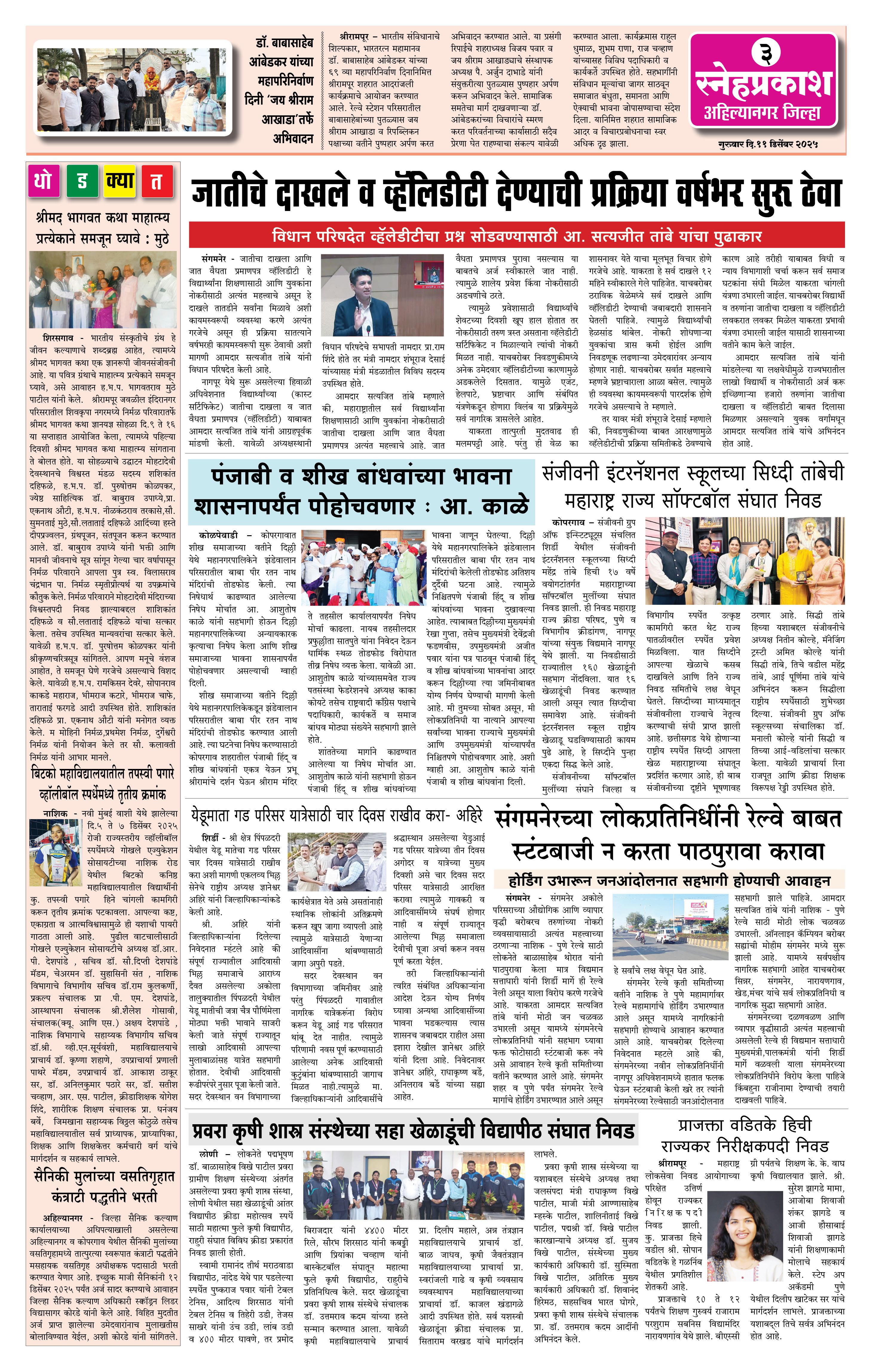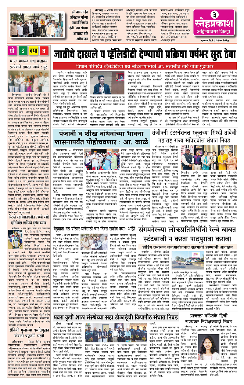 Daily Snehprakash (Marathi) Page: 3 December 11, 2025 Ahilyanagar-Pune-Nashik-shrirampur maharashtra 1 2 3 4 Page 1Page 2Page 3Page 4 × Daily Snehprakash (Marathi) 1121314 << First << 3 >> Last >> Page no 1Page no 2Page no 3Page no 4