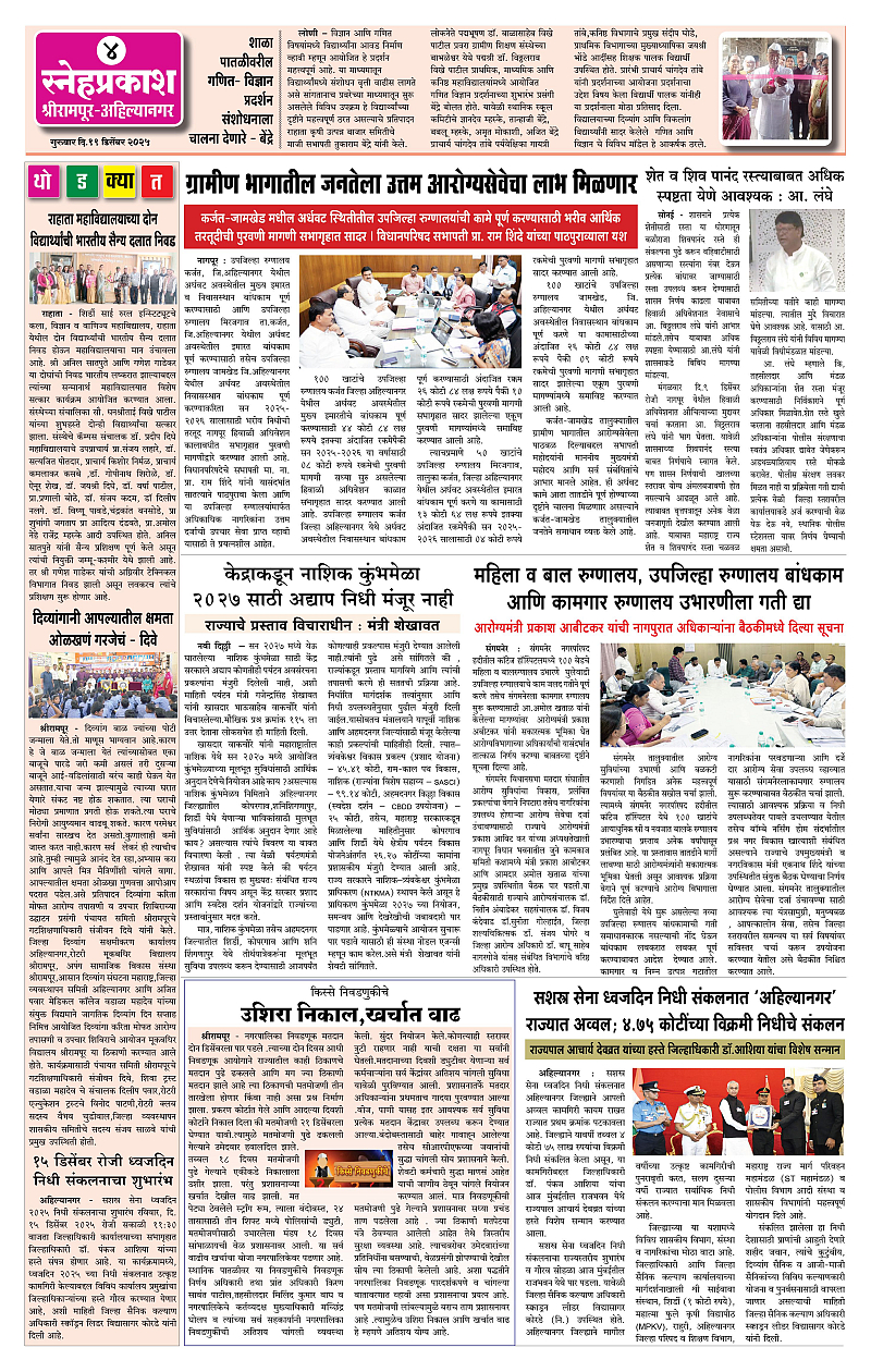 Daily Snehprakash (Marathi) Page: 4 December 11, 2025 Ahilyanagar-Pune-Nashik-shrirampur maharashtra 1 2 3 4 Page 1Page 2Page 3Page 4 × Daily Snehprakash (Marathi) 1121314 << First << 4 >> Last >> Page no 1Page no 2Page no 3Page no 4