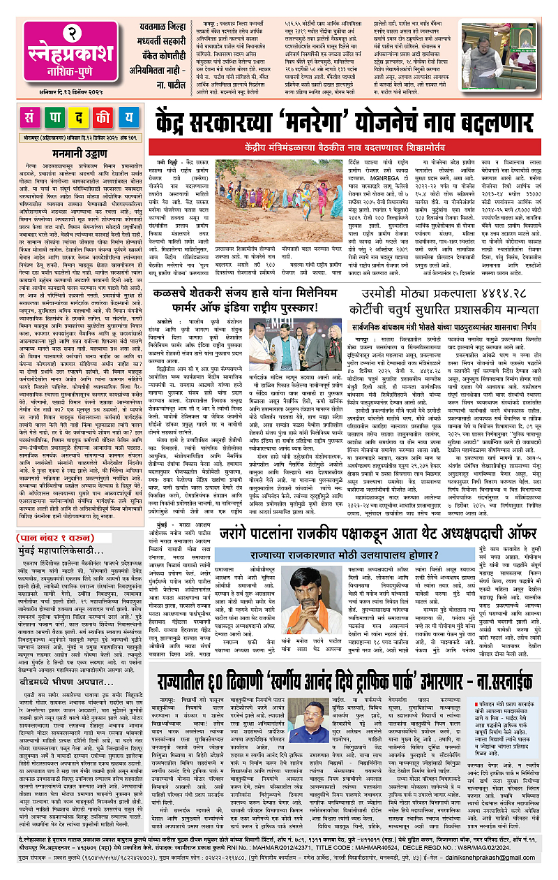 Daily Snehprakash (Marathi) Page: 2 December 13, 2025 ahilyanagar-pune-nashik-shrirampur-maharashtra 1 2 3 4 Page 1Page 2Page 3Page 4 × Daily Snehprakash (Marathi) 1-4 c1-4 c21-4 c31-4 c4 << First << 2 >> Last >> Page no 1Page no 2Page no 3Page no 4