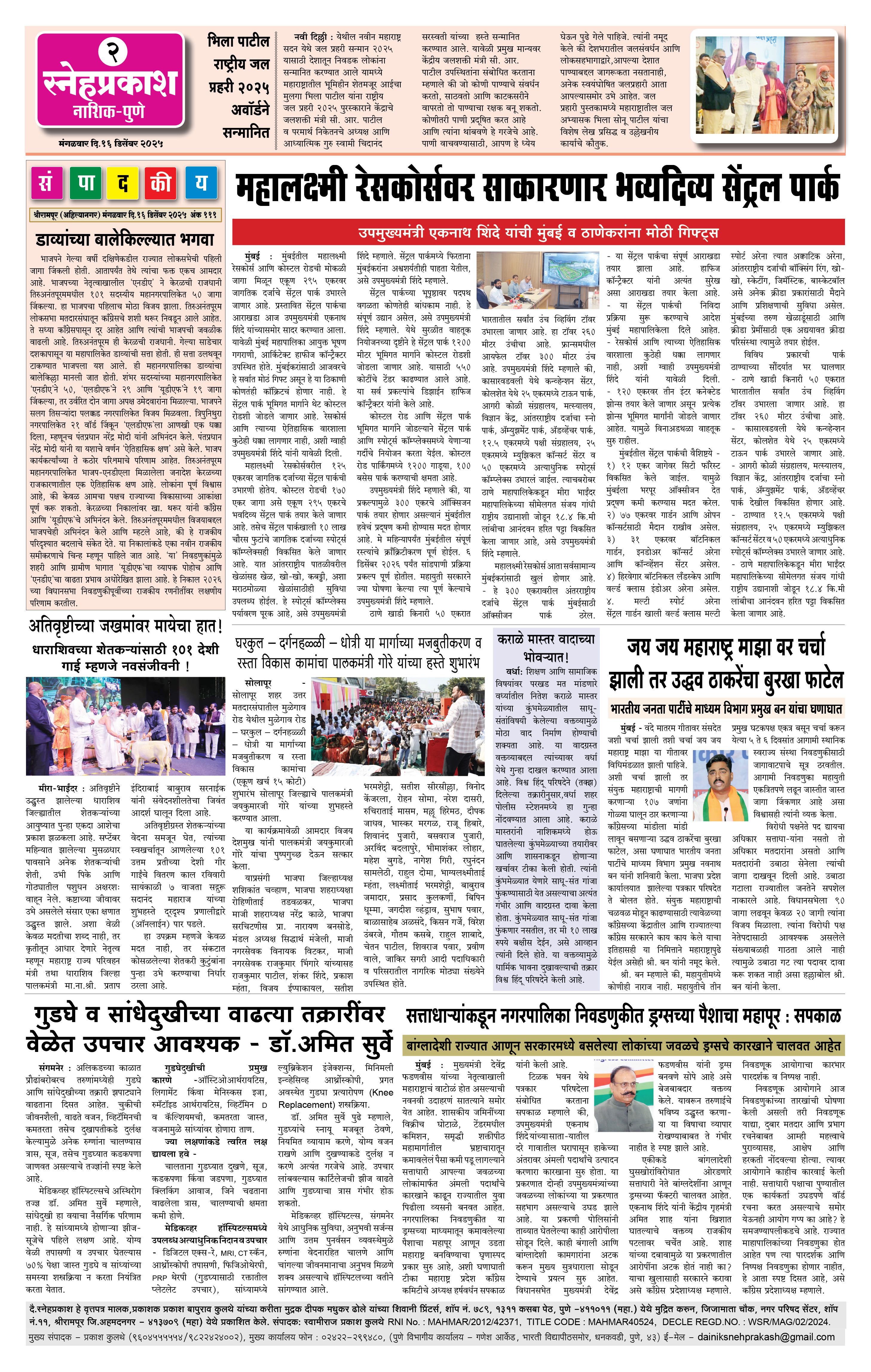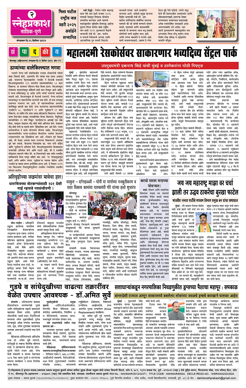 Daily Snehprakash (Marathi) Page: 2 December 16, 2025 Ahilyanagar-Pune-Nashik-shrirampur maharashtra 1 2 3 4 Page 1Page 2Page 3Page 4 × Daily Snehprakash (Marathi) 1-4 c1-4 c21-4 c31-4 c4 << First << 2 >> Last >> Page no 1Page no 2Page no 3Page no 4