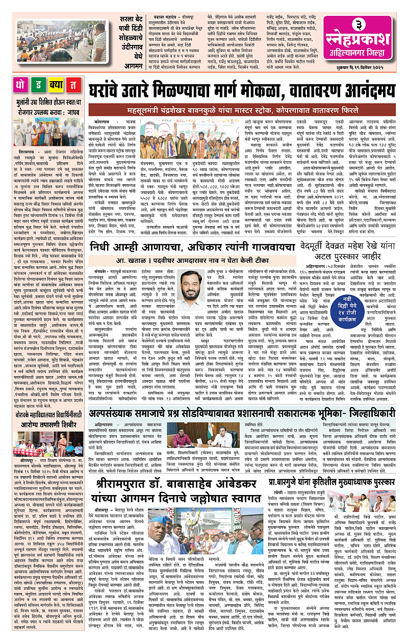 Daily Snehprakash (Marathi) Page: 3 December 19, 2025 Ahilyanagar-Pune-Nashik-shrirampur maharashtra 1 2 3 4 Page 1Page 2Page 3Page 4 × Daily Snehprakash (Marathi) 1-4 c1-4 c21-4 c31-4 c4 << First << 3 >> Last >> Page no 1Page no 2Page no 3Page no 4