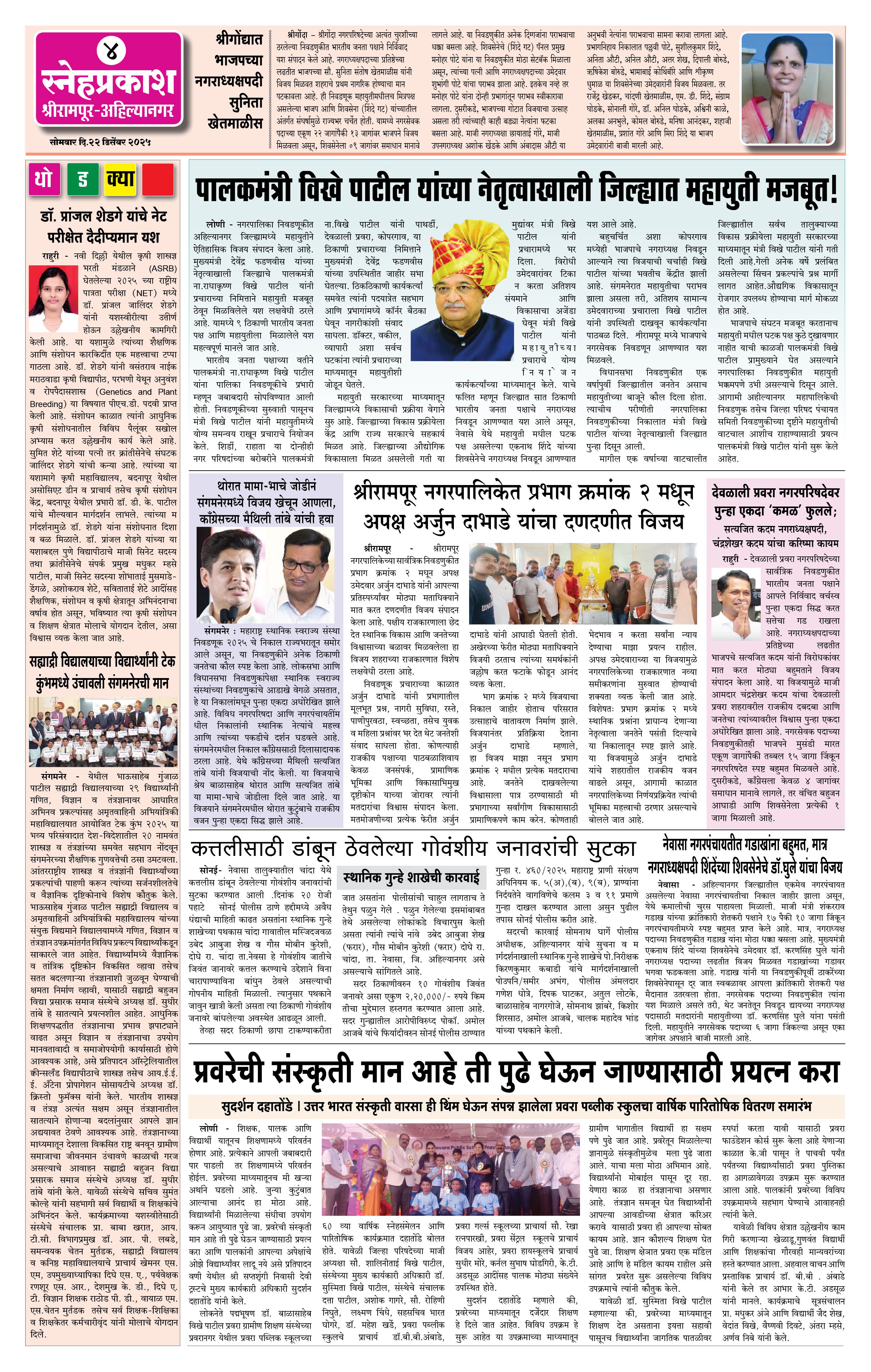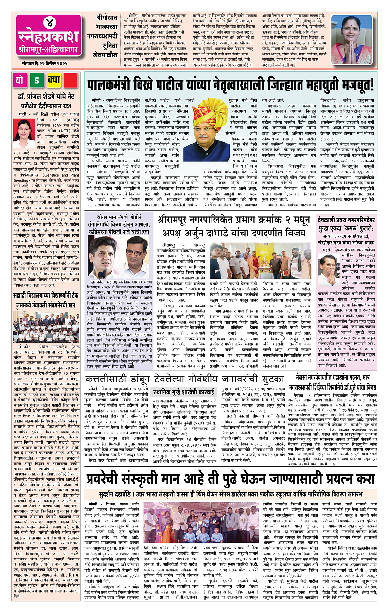Daily Snehprakash (Marathi) Page: 4 December 22, 2025 Ahilyanagar-Pune-Nashik-shrirampur maharashtra 1 2 3 4 Page 1Page 2Page 3Page 4 × Daily Snehprakash (Marathi) cccc1-4 c21-4 c31-4 c4 << First << 4 >> Last >> Page no 1Page no 2Page no 3Page no 4
