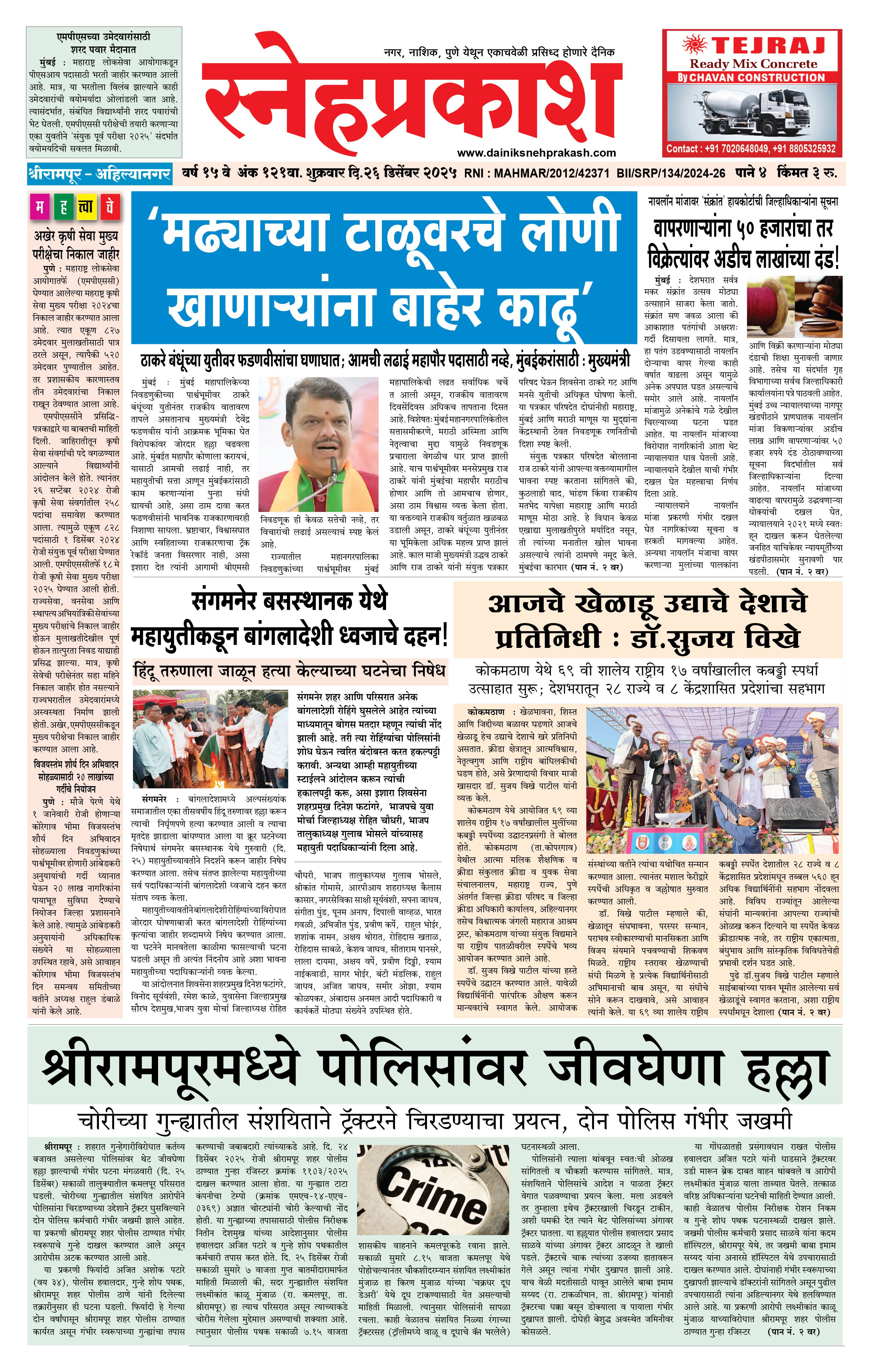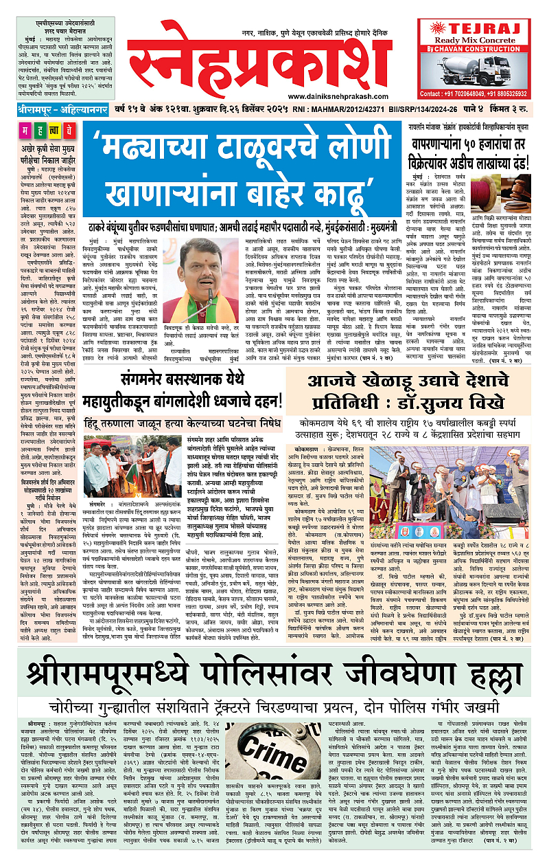 Daily Snehprakash (Marathi) December 26, 2025 Ahilyanagar-Pune-Nashik-shrirampur maharashtra 1 2 3 4 Page 1Page 2Page 3Page 4 × Daily Snehprakash (Marathi) 4424344 << First << 1 >> Last >> Page no 1Page no 2Page no 3Page no 4