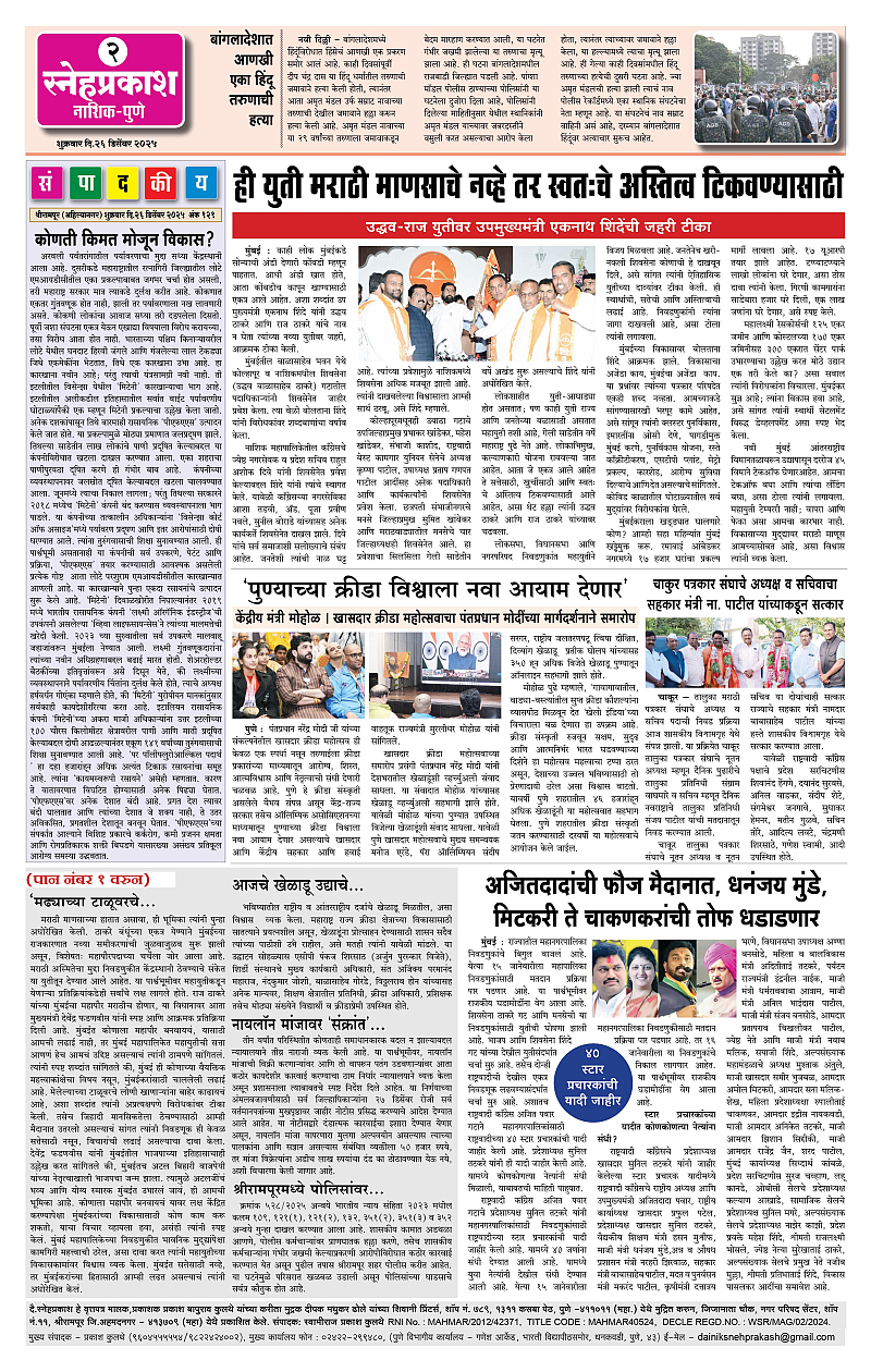 Daily Snehprakash (Marathi) Page: 2 December 26, 2025 Ahilyanagar-Pune-Nashik-shrirampur maharashtra 1 2 3 4 Page 1Page 2Page 3Page 4 × Daily Snehprakash (Marathi) 4424344 << First << 2 >> Last >> Page no 1Page no 2Page no 3Page no 4