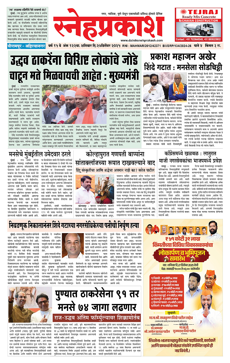 Daily Snehprakash (Marathi) December 27, 2025 Ahilyanagar-Pune-Nashik-shrirampur maharashtra 1 2 3 4 Page 1Page 2Page 3Page 4 × Daily Snehprakash (Marathi) 1121314 << First << 1 >> Last >> Page no 1Page no 2Page no 3Page no 4