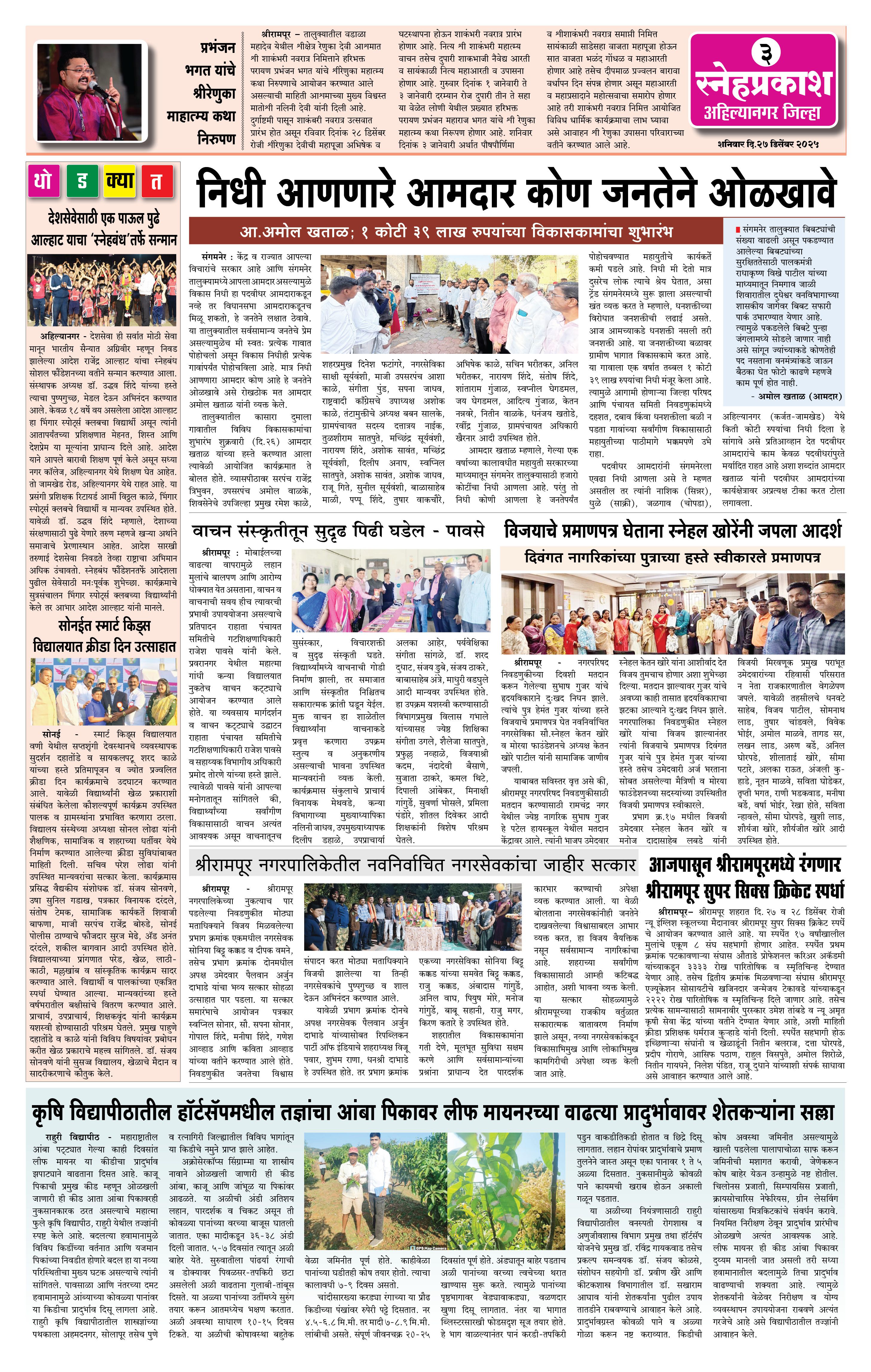 Daily Snehprakash (Marathi) Page: 3 December 27, 2025 Ahilyanagar-Pune-Nashik-shrirampur maharashtra 1 2 3 4 Page 1Page 2Page 3Page 4 × Daily Snehprakash (Marathi) 1121314 << First << 3 >> Last >> Page no 1Page no 2Page no 3Page no 4
