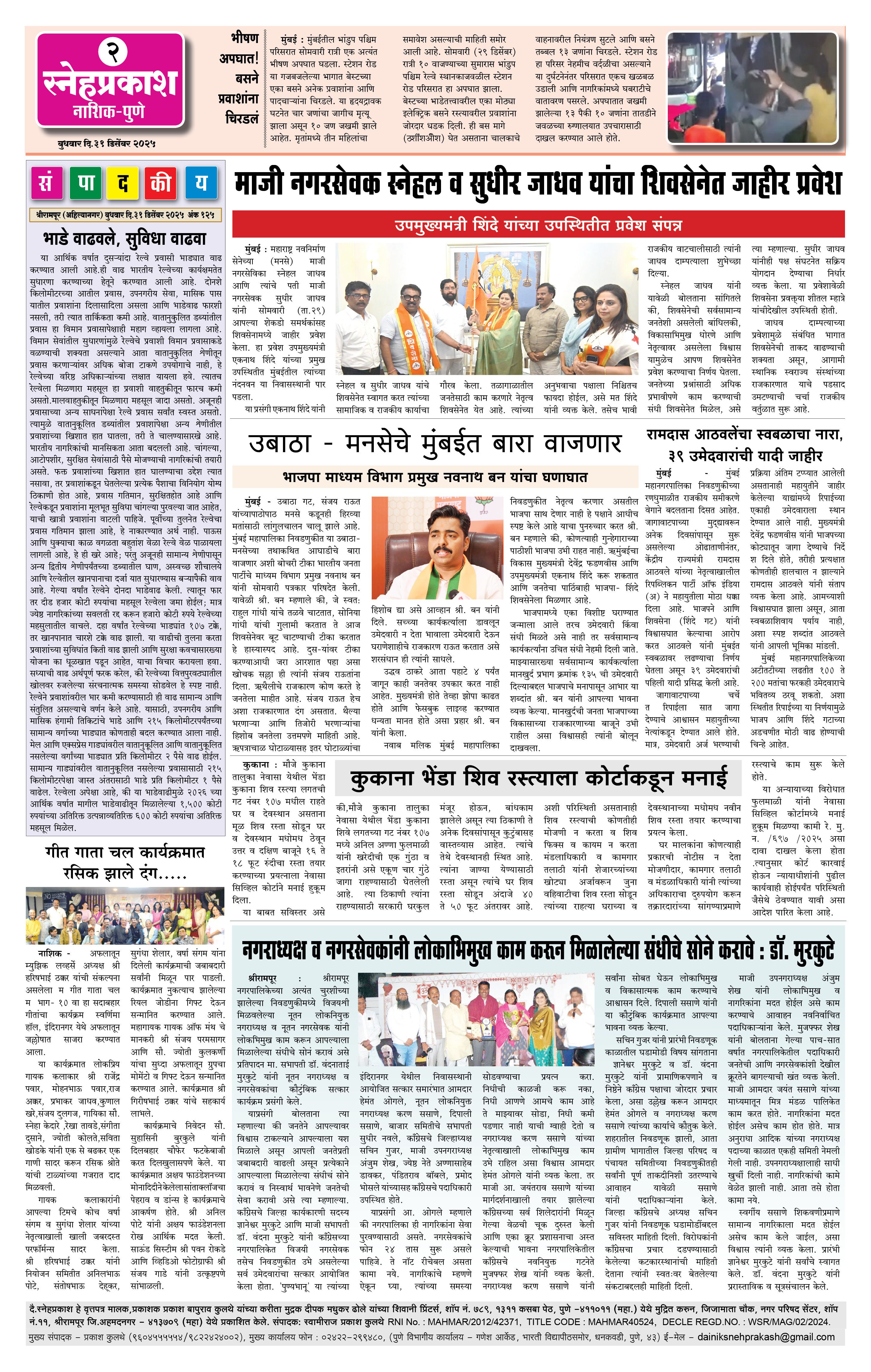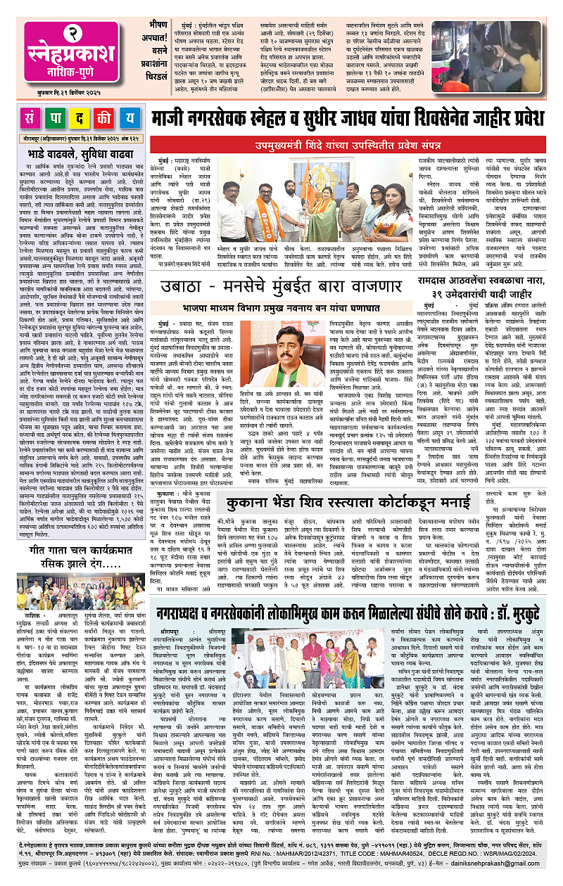 Daily Snehprakash (Marathi) Page: 2 December 31, 2025 Ahilyanagar-Pune-Nashik-shrirampur maharashtra 1 2 3 4 Page 1Page 2Page 3Page 4 × Daily Snehprakash (Marathi) 3323334 << First << 2 >> Last >> Page no 1Page no 2Page no 3Page no 4