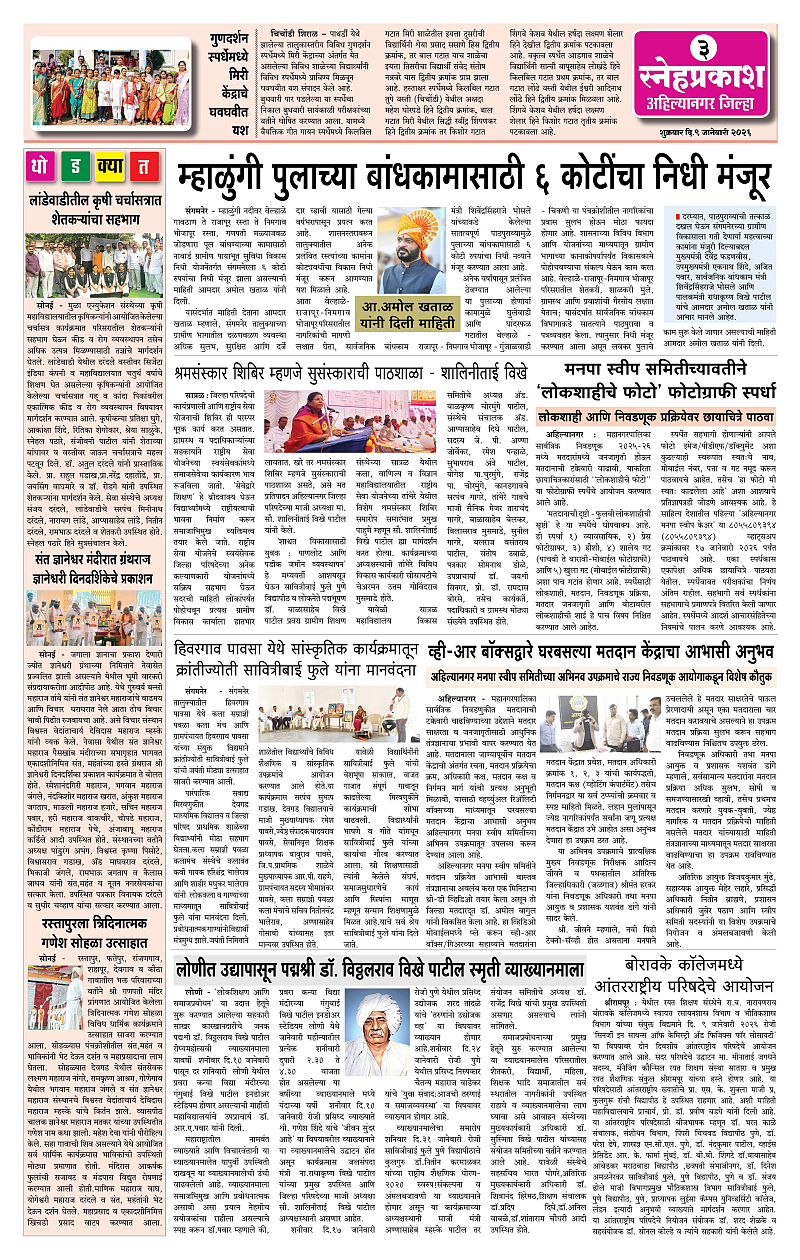 Daily Snehprakash (Marathi) Page: 3 January 09, 2026 Ahilyanagar-Pune-Nashik-shrirampur maharashtra 1 2 3 4 Page 1Page 2Page 3Page 4 × Daily Snehprakash (Marathi) 1-41-421-431-44 << First << 3 >> Last >> Page no 1Page no 2Page no 3Page no 4