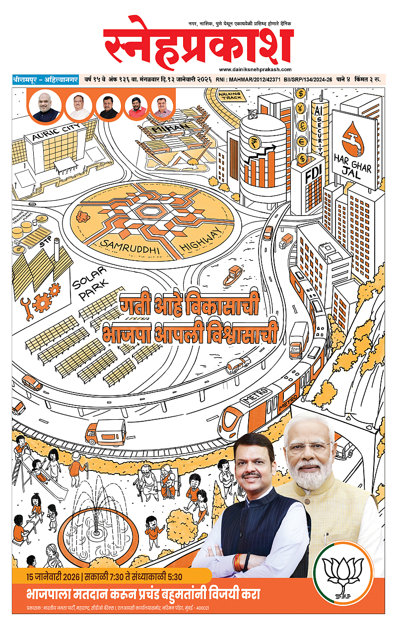 Daily Snehprakash (Marathi) January 13, 2026 Ahilyanagar-Pune-Nashik-shrirampur maharashtra 1 2 3 4 Page 1Page 2Page 3Page 4 × Daily Snehprakash (Marathi) 1-4 SNEH PRAKASH COLOUR (13 January 2025)1-4 SNEH PRAKASH COLOUR (13 January 2025)21-4 SNEH PRAKASH COLOUR (13 January 2025)31-4 SNEH PRAKASH COLOUR (13 January 2025)4 << First << 1 >> Last >> Page no 1Page no 2Page no 3Page no 4