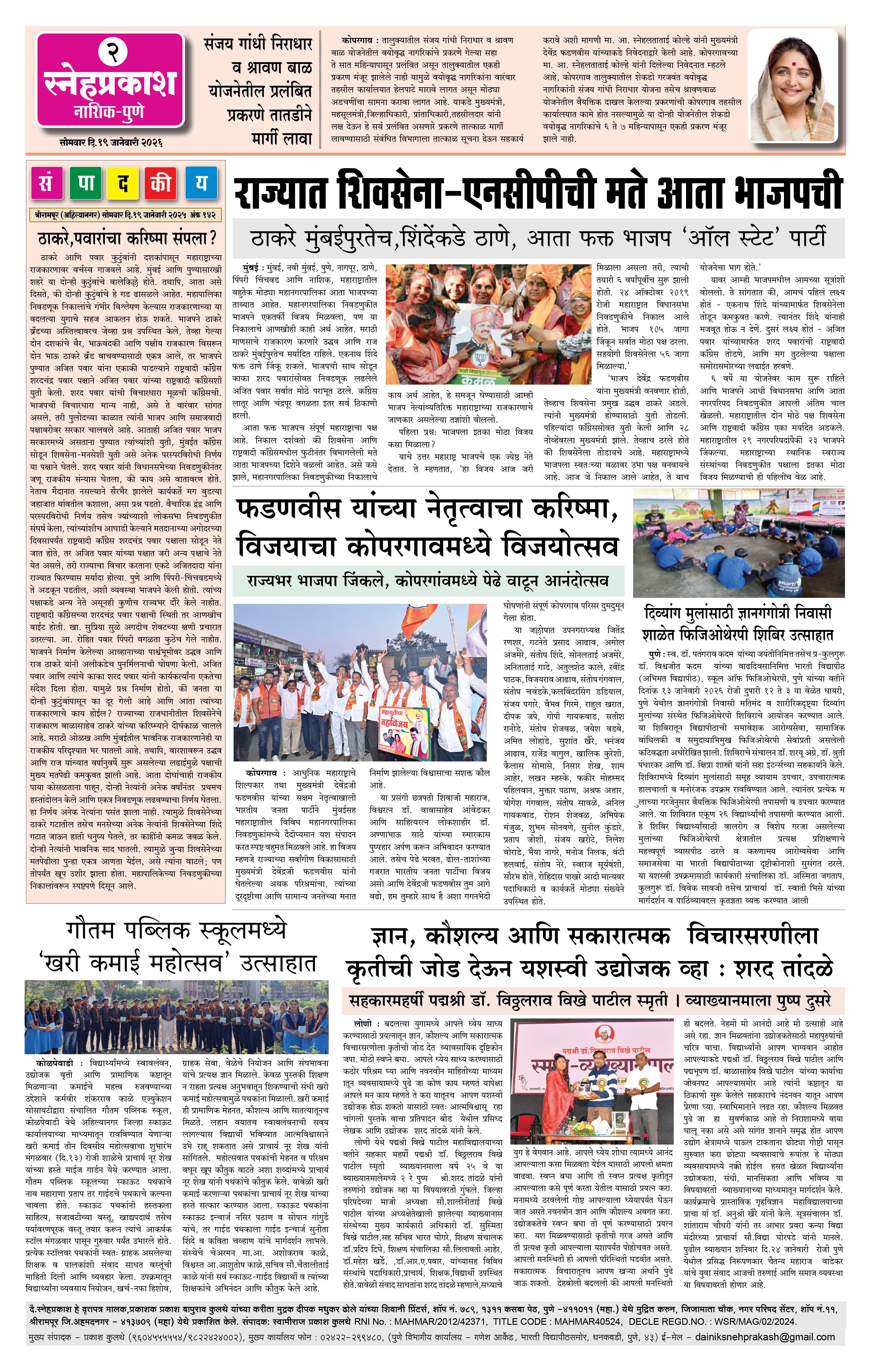 Daily Snehprakash (Marathi) Page: 2 January 19, 2026 Ahilyanagar-Pune-Nashik-shrirampur maharashtra 1 2 3 4 Page 1Page 2Page 3Page 4 × Daily Snehprakash (Marathi) 19 Jan- SNEH PRAKASH (1-4) Colour19 Jan- SNEH PRAKASH (1-4) Colour219 Jan- SNEH PRAKASH (1-4) Colour319 Jan- SNEH PRAKASH (1-4) Colour4 << First << 2 >> Last >> Page no 1Page no 2Page no 3Page no 4