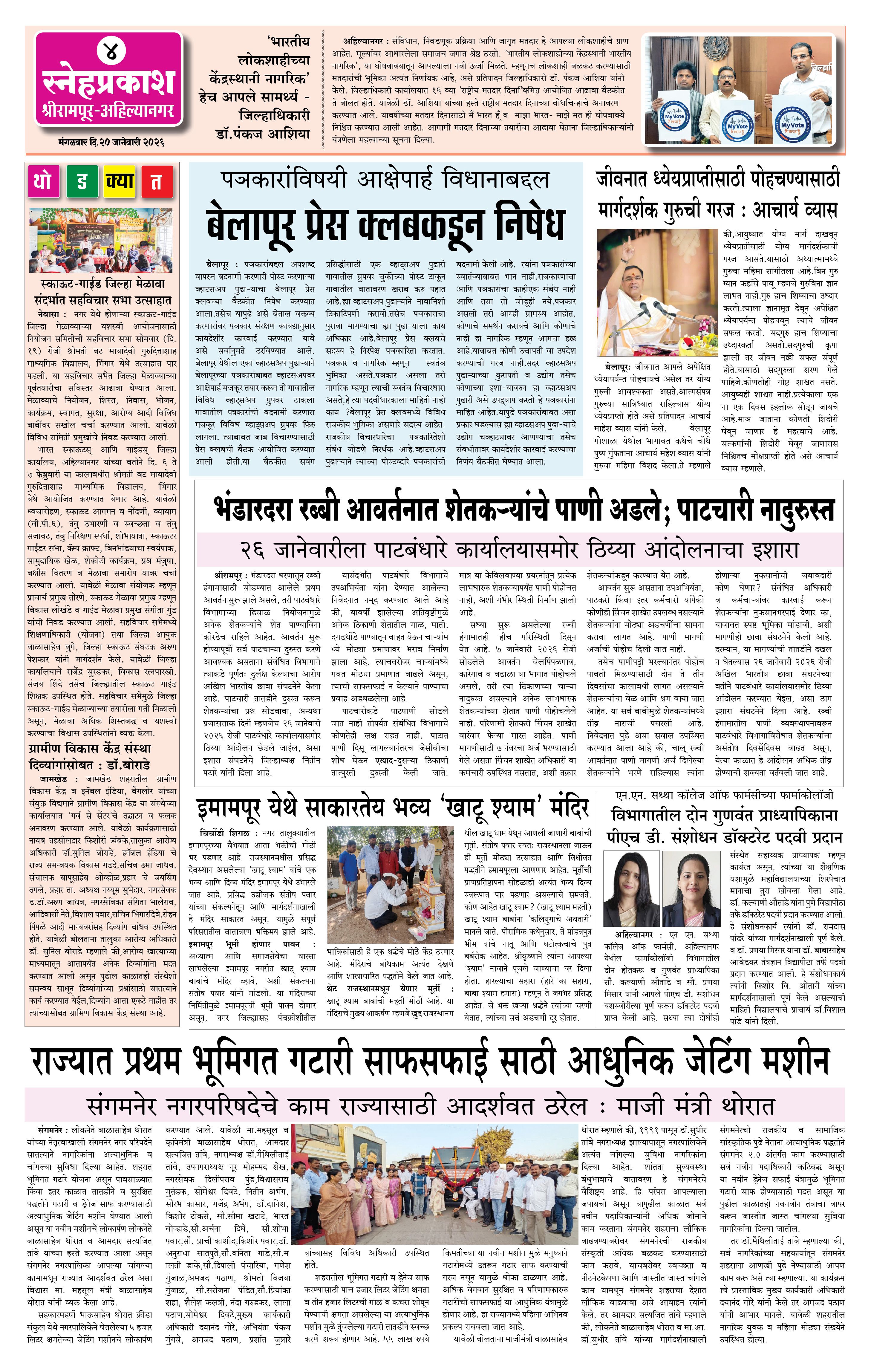 Daily Snehprakash (Marathi) Page: 4 January 20, 2026 Ahilyanagar-Pune-Nashik-shrirampur maharashtra 1 2 3 4 Page 1Page 2Page 3Page 4 × Daily Snehprakash (Marathi) SNEH PRAKASH 1-4 ColourSNEH PRAKASH 1-4 Colour2SNEH PRAKASH 1-4 Colour3SNEH PRAKASH 1-4 Colour4 << First << 4 >> Last >> Page no 1Page no 2Page no 3Page no 4