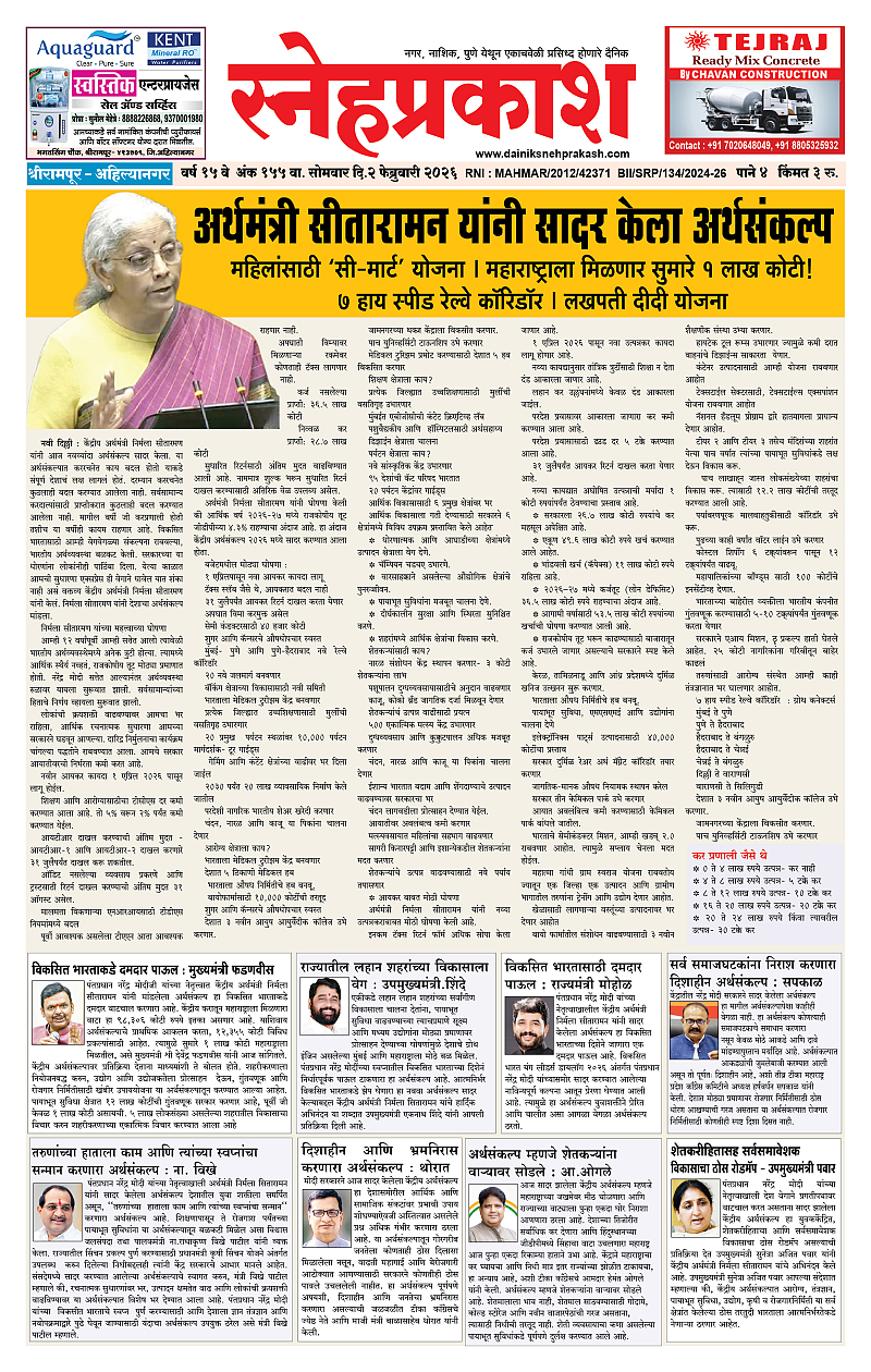 Daily Snehprakash (Marathi) February 02, 2026 Daily Snehprakash (Marathi) 1 2 3 4 Page 1Page 2Page 3Page 4 × Daily Snehprakash (Marathi) 1234 << First << 1 >> Last >> Page no 1Page no 2Page no 3Page no 4