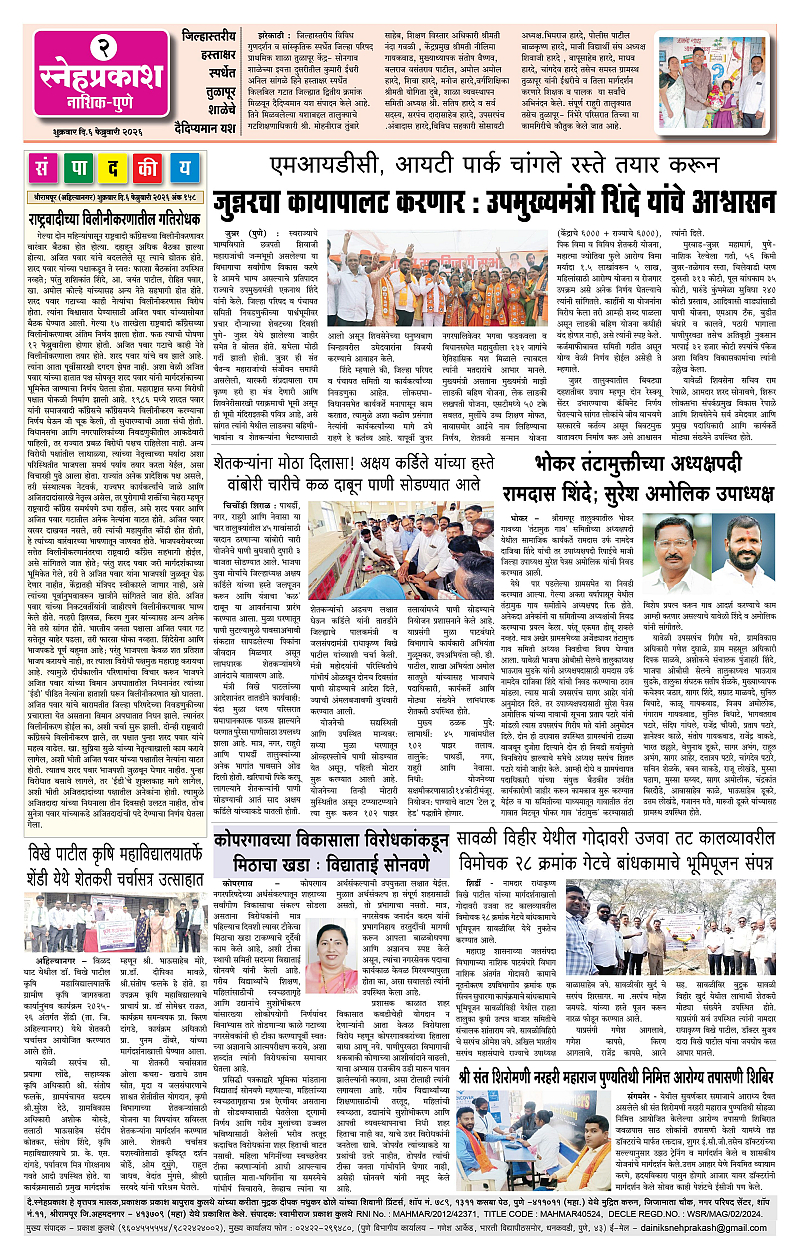 Daily Snehprakash (Marathi) Page: 2 February 06, 2026 Ahilyanagar-Pune-Nashik-shrirampur maharashtra 1 2 3 4 Page 1Page 2Page 3Page 4 × Daily Snehprakash (Marathi) 12-422-432-44 << First << 2 >> Last >> Page no 1Page no 2Page no 3Page no 4