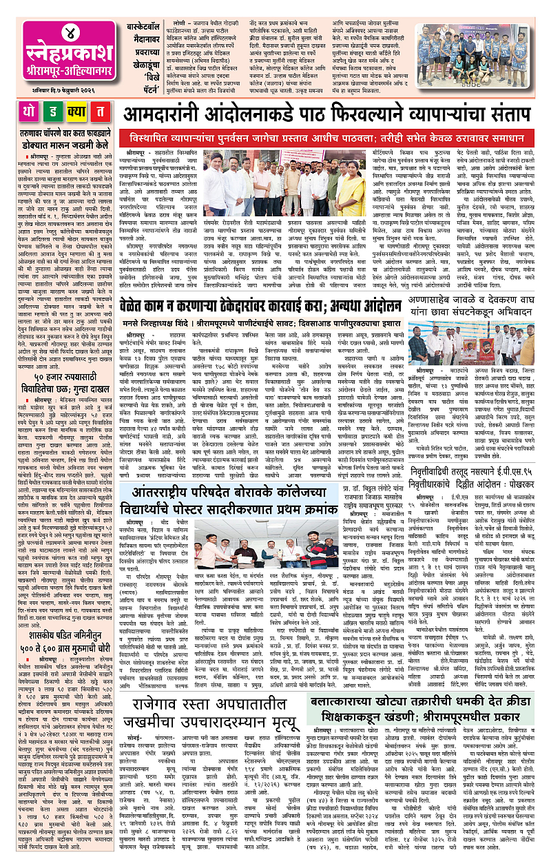 Daily Snehprakash (Marathi) Page: 4 February 07, 2026 Ahilyanagar-Pune-Nashik-shrirampur maharashtra 1 2 3 4 Page 1Page 2Page 3Page 4 × Daily Snehprakash (Marathi) 1121314 << First << 4 >> Last >> Page no 1Page no 2Page no 3Page no 4