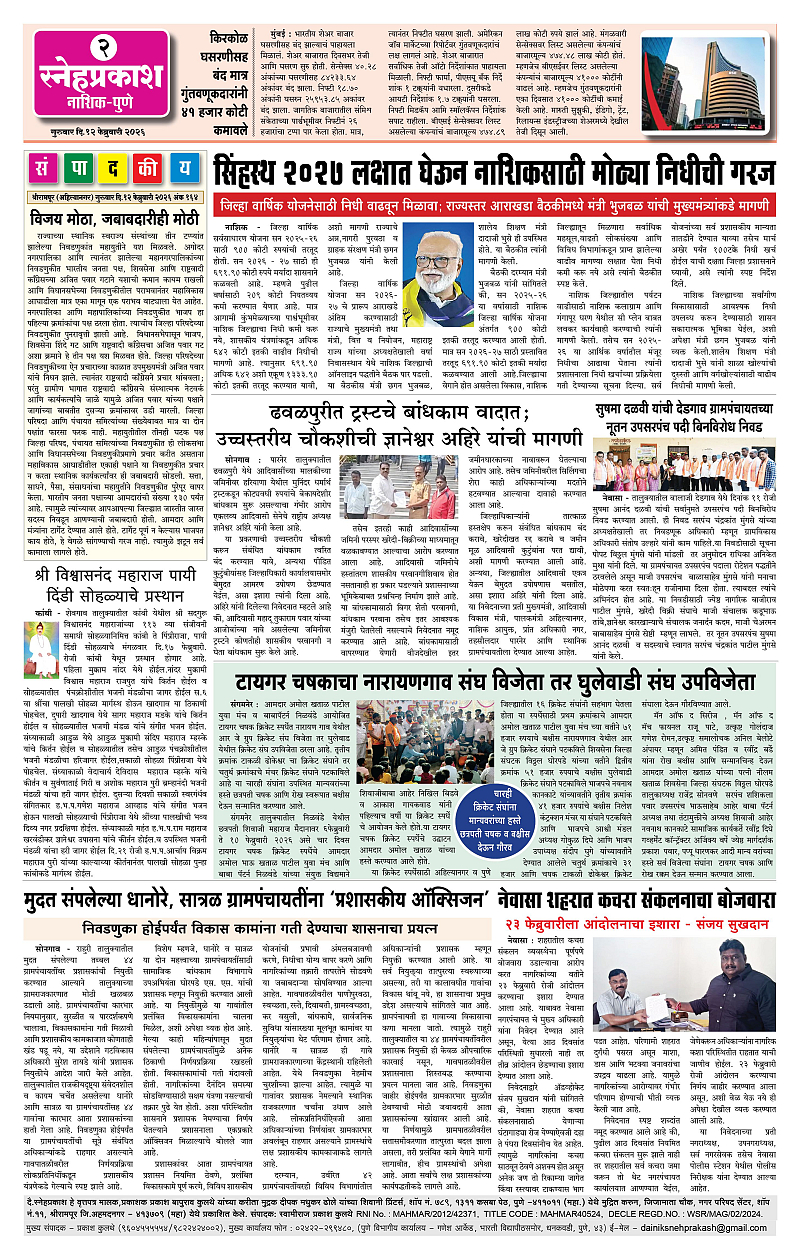 Daily Snehprakash (Marathi) Page: 3 February 12, 2026 Ahilyanagar-Pune-Nashik-shrirampur maharashtra 1 2 3 4 Page 1Page 2Page 3Page 4 × Daily Snehprakash (Marathi) 1234 << First << 3 >> Last >> Page no 1Page no 2Page no 3Page no 4