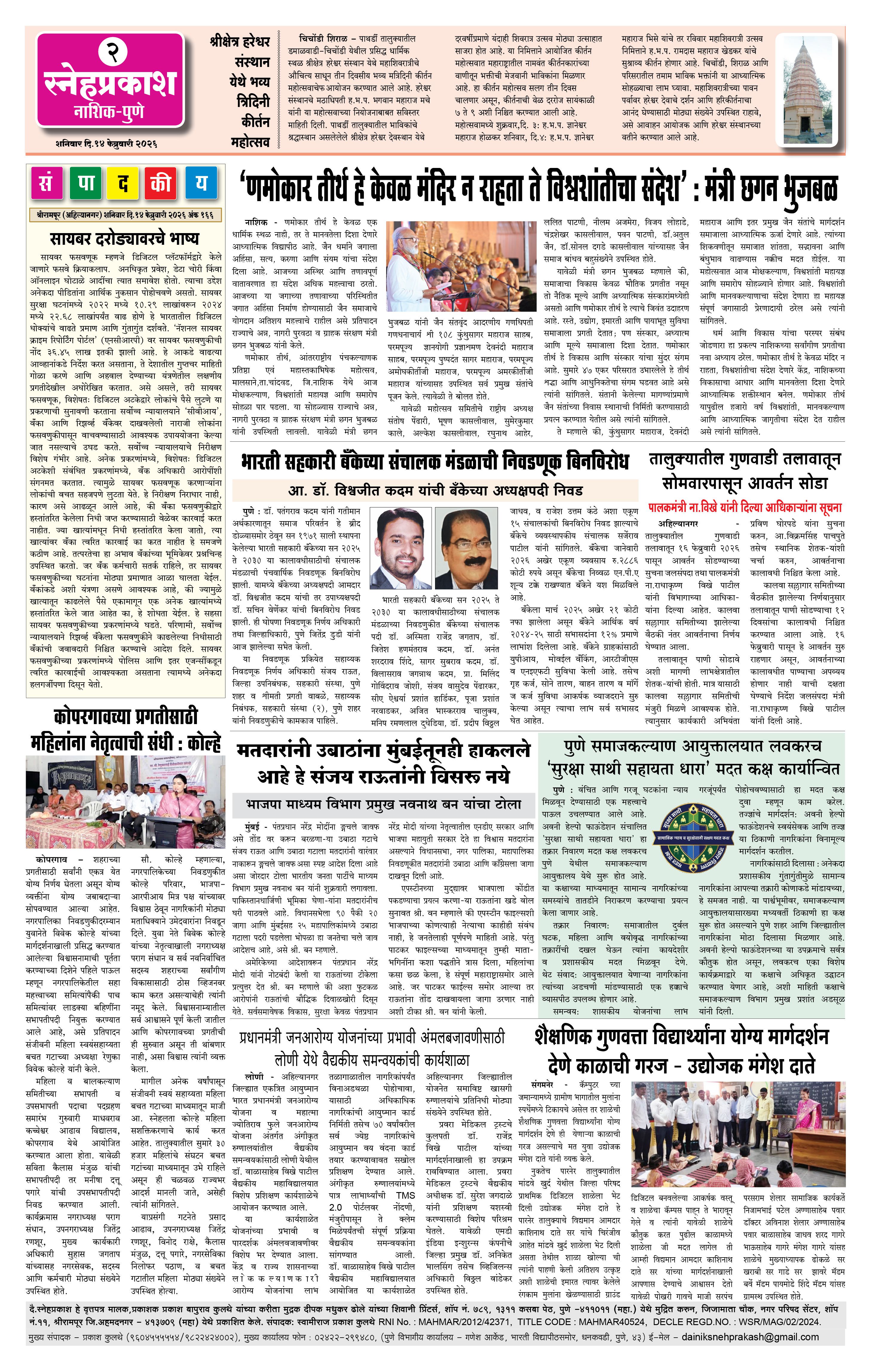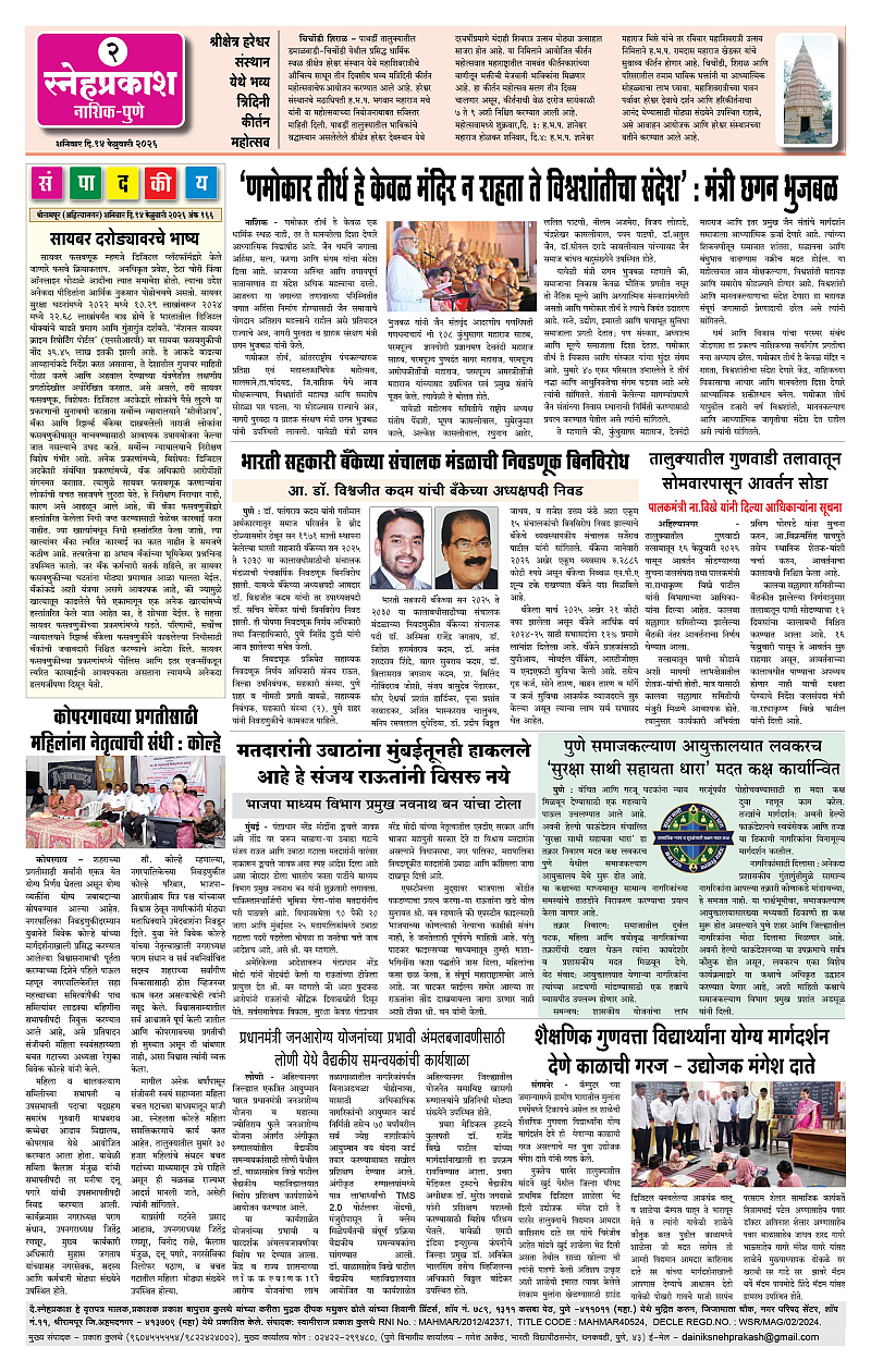 Daily Snehprakash (Marathi) Page: 2 February 14, 2026 Ahilyanagar-Pune-Nashik-shrirampur maharashtra 1 2 3 4 Page 1Page 2Page 3Page 4 × Daily Snehprakash (Marathi) 1-41-421-431-44 << First << 2 >> Last >> Page no 1Page no 2Page no 3Page no 4