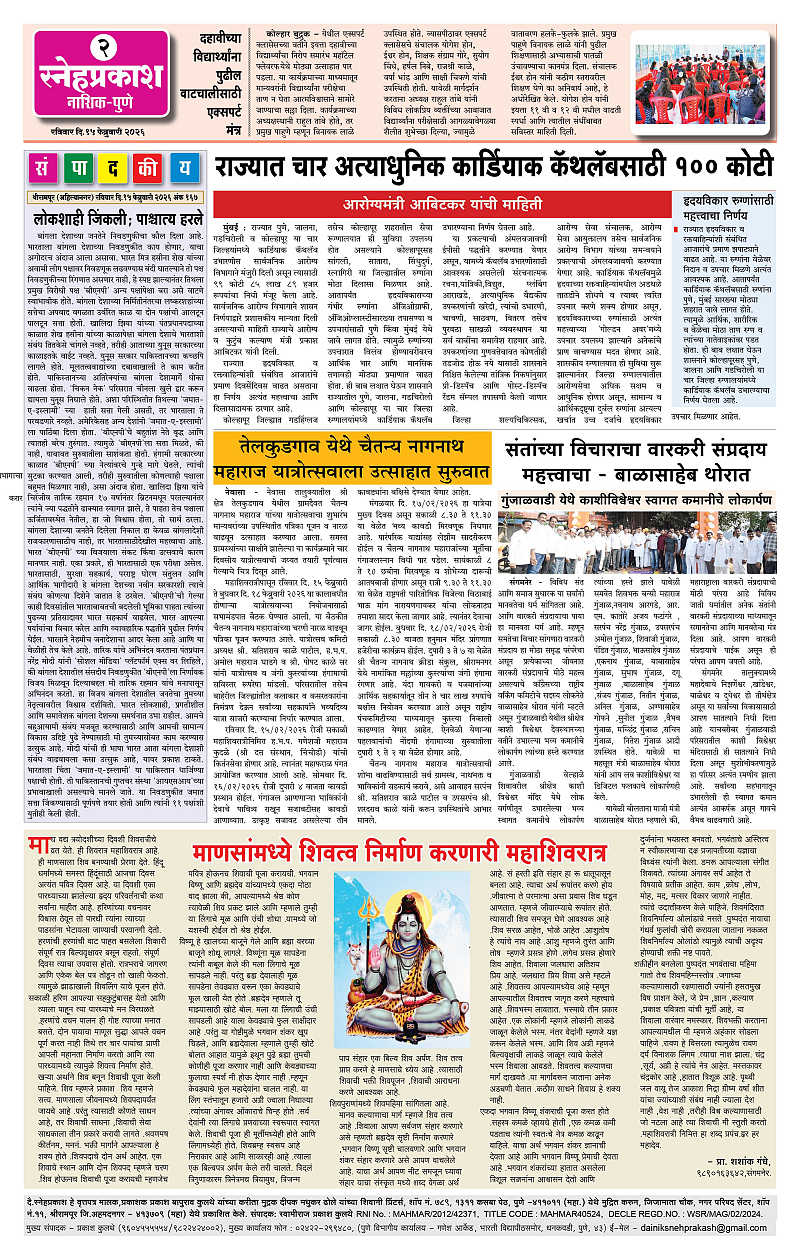 Daily Snehprakash (Marathi) Page: 2 February 15, 2026 Ahilyanagar-Pune-Nashik-shrirampur maharashtra 1 2 3 4 Page 1Page 2Page 3Page 4 × Daily Snehprakash (Marathi) 1121314 << First << 2 >> Last >> Page no 1Page no 2Page no 3Page no 4