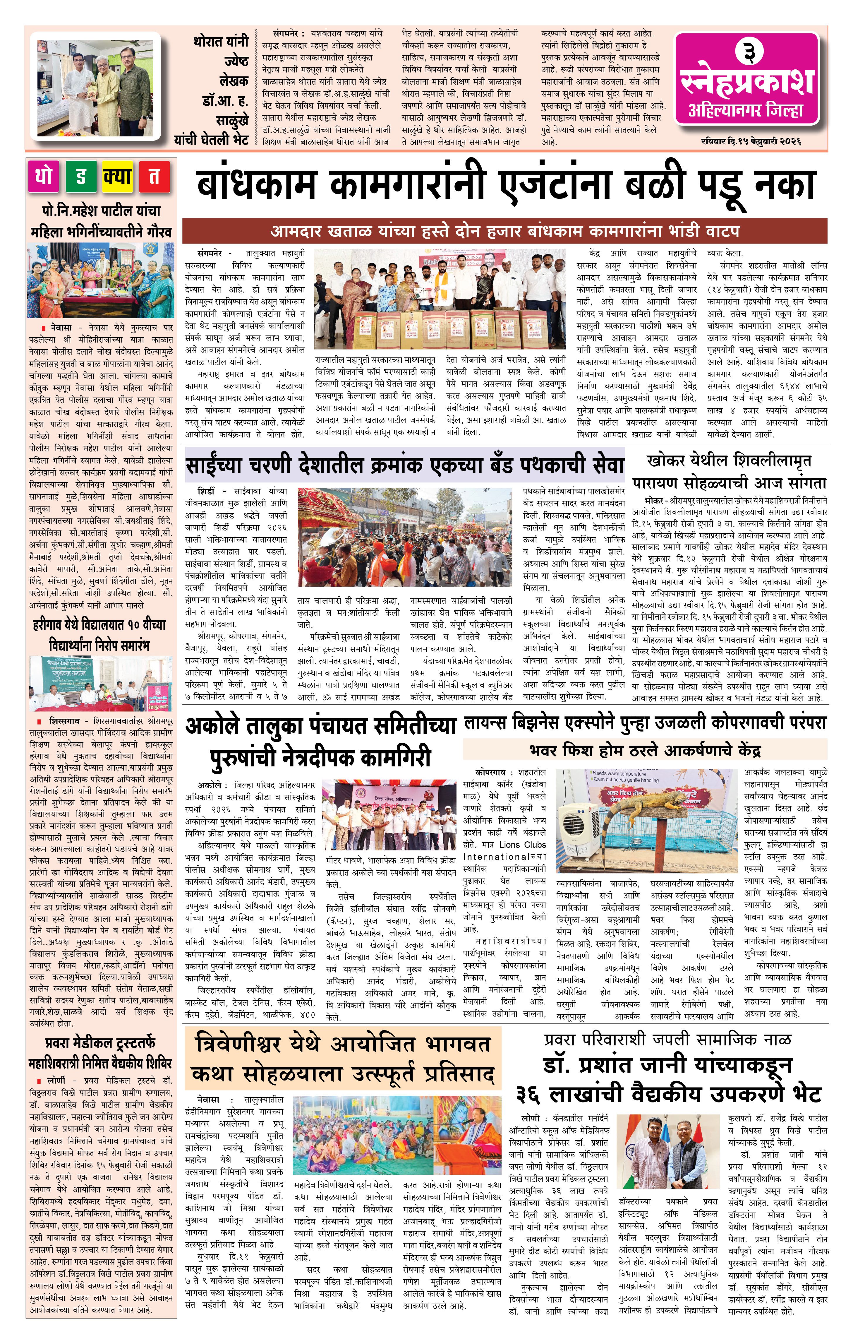 Daily Snehprakash (Marathi) Page: 3 February 15, 2026 Ahilyanagar-Pune-Nashik-shrirampur maharashtra 1 2 3 4 Page 1Page 2Page 3Page 4 × Daily Snehprakash (Marathi) 1121314 << First << 3 >> Last >> Page no 1Page no 2Page no 3Page no 4