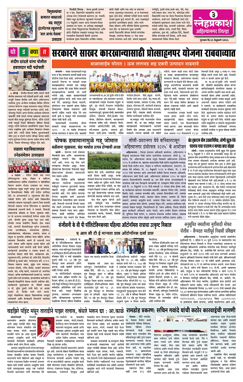 Daily Snehprakash (Marathi) Page: 3 February 26, 2026 Ahilyanagar-Pune-Nashik-shrirampur maharashtra 1 2 3 4 Page 1Page 2Page 3Page 4 × Daily Snehprakash (Marathi) 12-42-422-43 << First << 3 >> Last >> Page no 1Page no 2Page no 3Page no 4