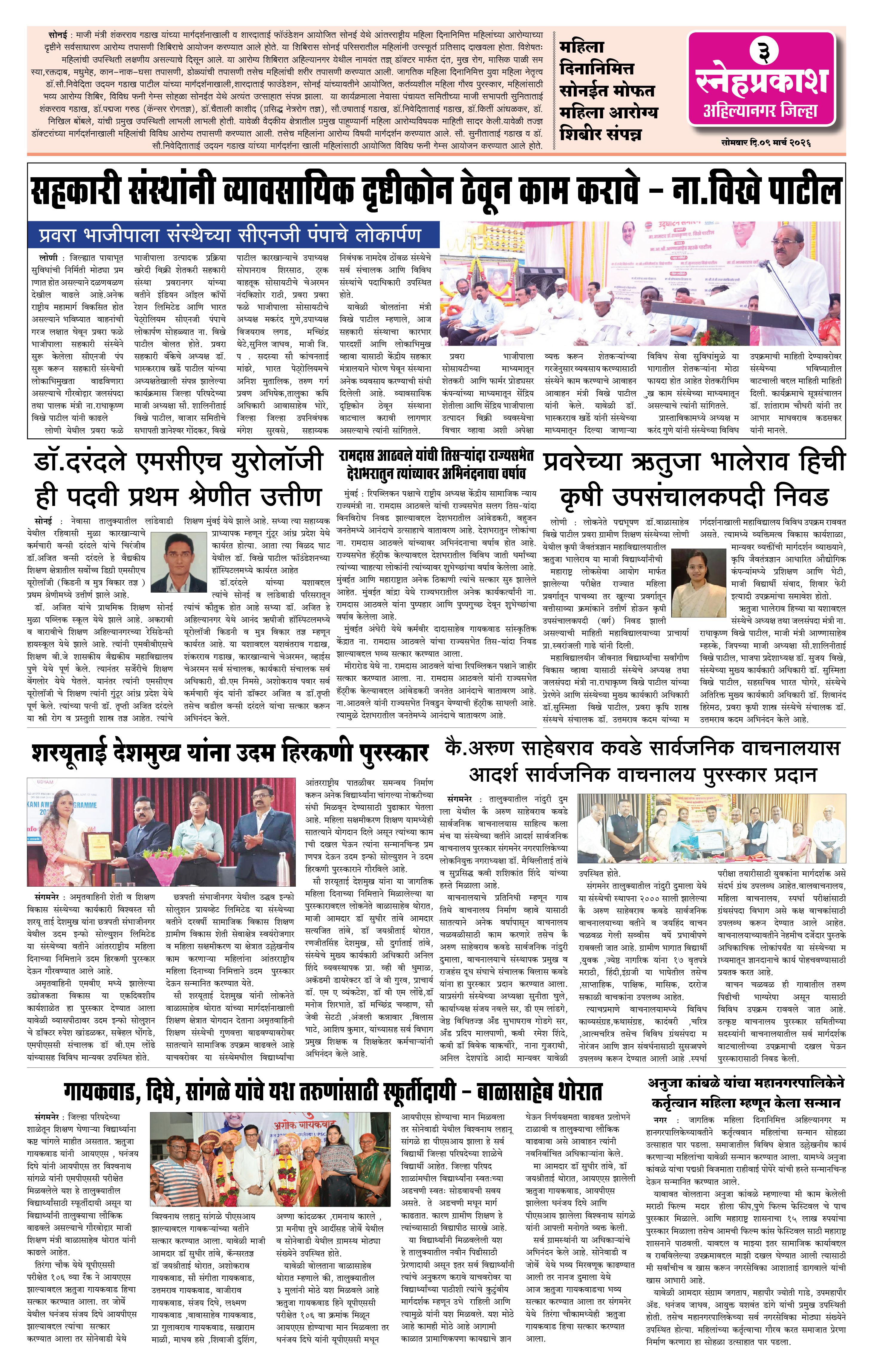 Daily Snehprakash (Marathi) Page: 3 March 09, 2026 Ahilyanagar-Pune-Nashik-shrirampur maharashtra 1 2 3 4 Page 1Page 2Page 3Page 4 × Daily Snehprakash (Marathi) 1-41-421-431-44 << First << 3 >> Last >> Page no 1Page no 2Page no 3Page no 4