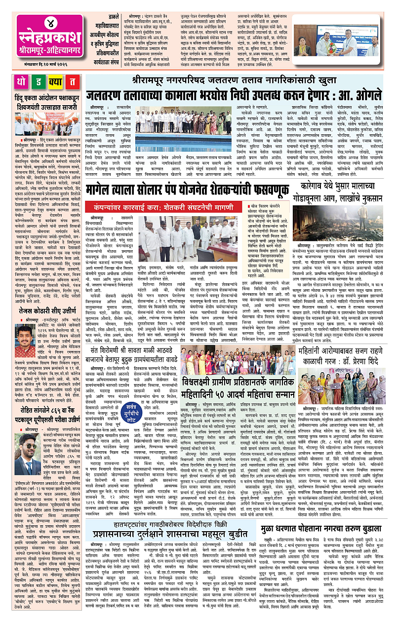 Daily Snehprakash (Marathi) Page: 4 March 10, 2026 Ahilyanagar-Pune-Nashik-shrirampur maharashtra 1 2 3 4 Page 1Page 2Page 3Page 4 × Daily Snehprakash (Marathi) 112-122-132-14 << First << 4 >> Last >> Page no 1Page no 2Page no 3Page no 4