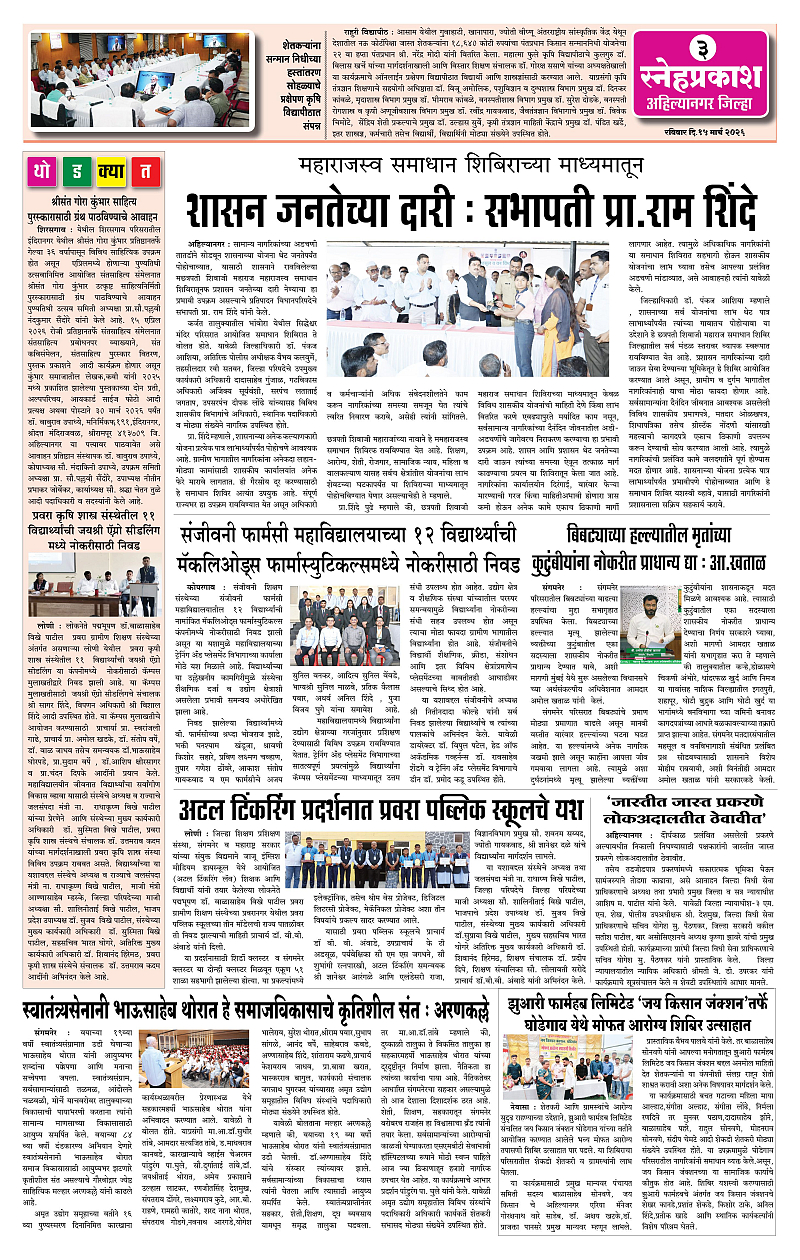 Daily Snehprakash (Marathi) Page: 3 March 15, 2026 Ahilyanagar-Pune-Nashik-shrirampur maharashtra 1 2 3 4 Page 1Page 2Page 3Page 4 × Daily Snehprakash (Marathi) 1-41-421-431-44 << First << 3 >> Last >> Page no 1Page no 2Page no 3Page no 4