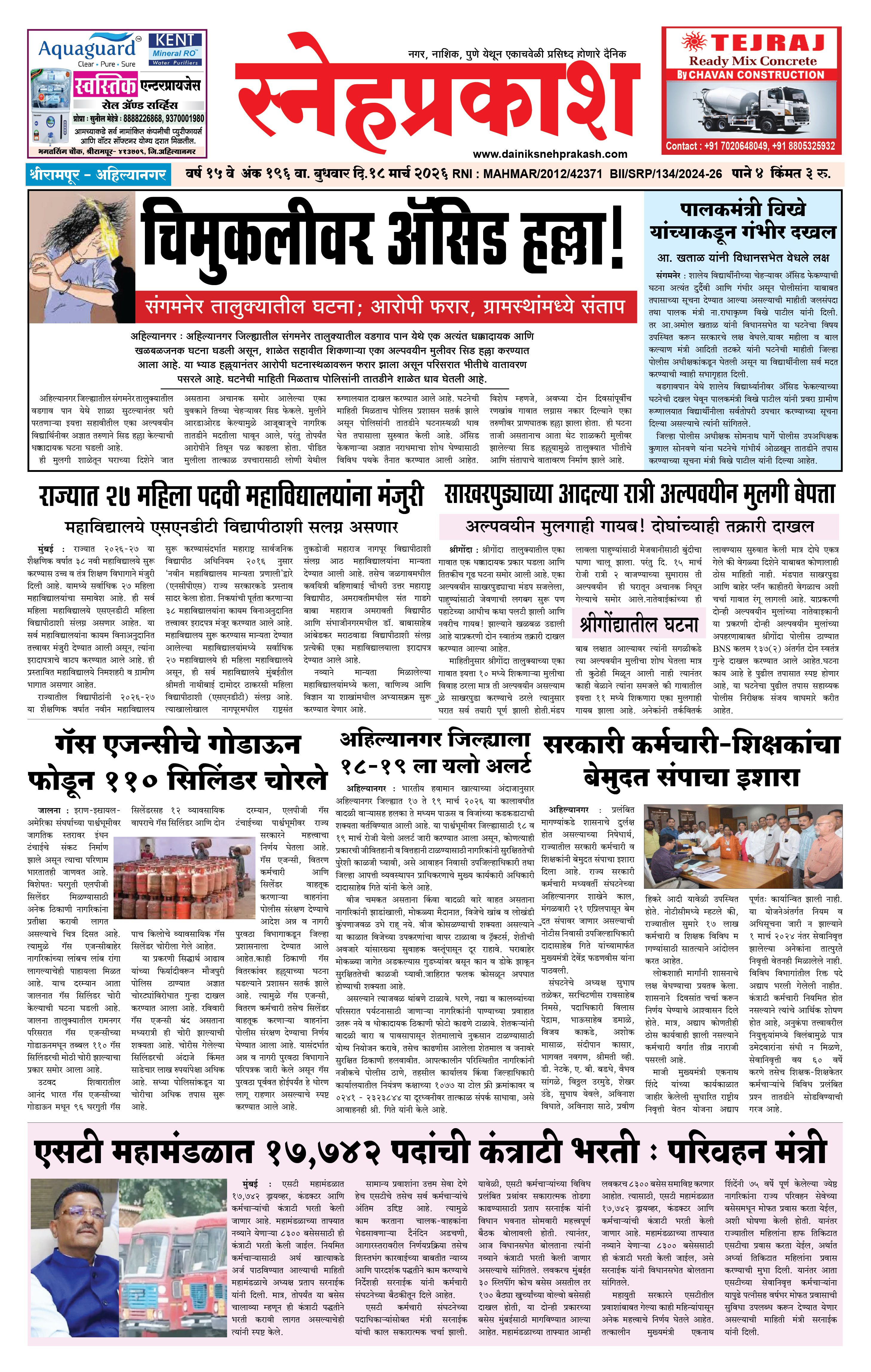 Daily Snehprakash (Marathi) March 18, 2026 Ahilyanagar-Pune-Nashik-shrirampur maharashtra 1 2 3 4 Page 1Page 2Page 3Page 4 × Daily Snehprakash (Marathi) 1-4 Snehprakash (Black)1-4 Snehprakash (Black)21-4 Snehprakash (Black)31-4 Snehprakash (Black)4 << First << 1 >> Last >> Page no 1Page no 2Page no 3Page no 4