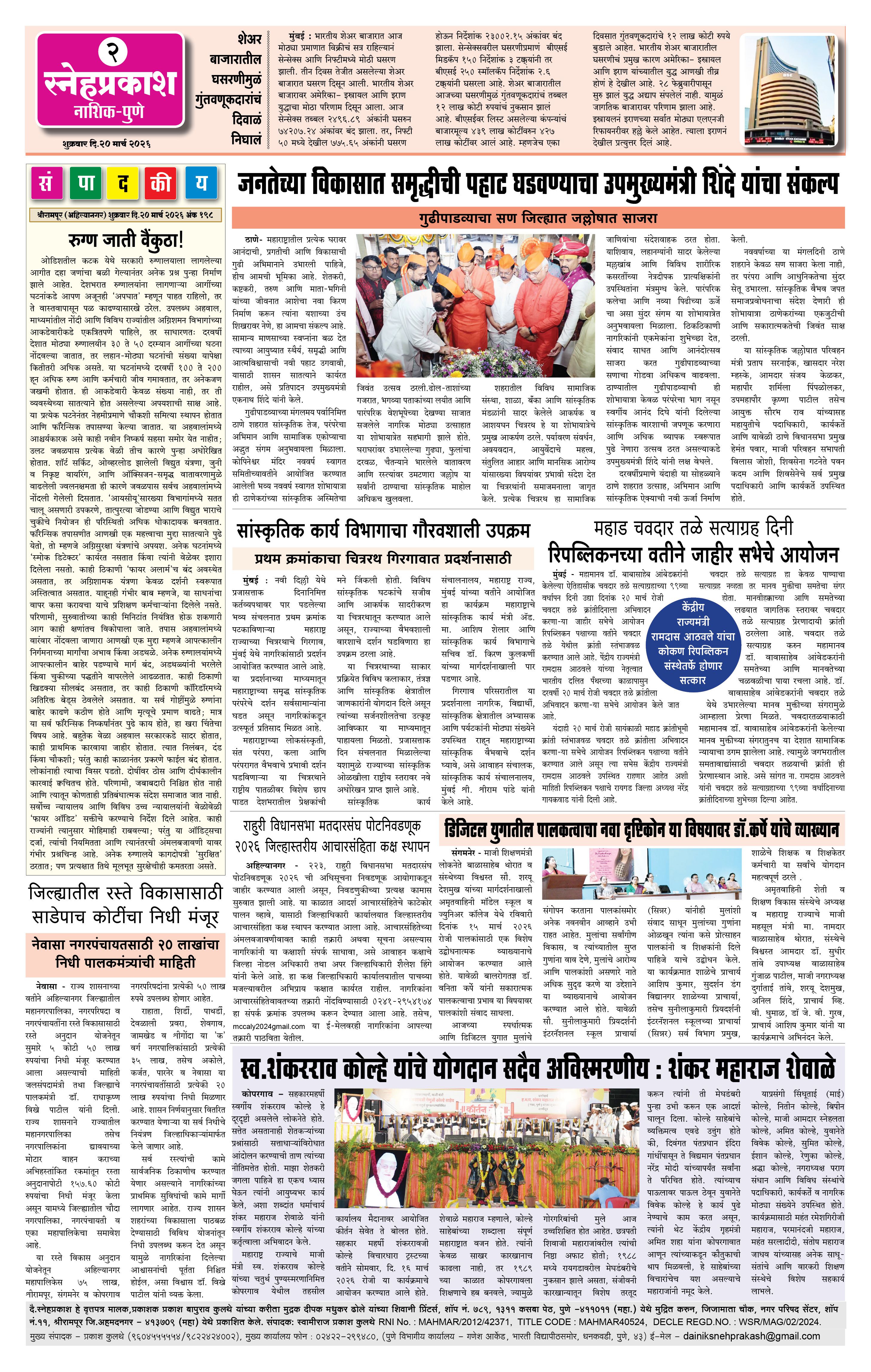 Daily Snehprakash (Marathi) Page: 2 March 20, 2026 Ahilyanagar-Pune-Nashik-shrirampur maharashtra 1 2 3 4 Page 1Page 2Page 3Page 4 × Daily Snehprakash (Marathi) 1-41-423-31-44 << First << 2 >> Last >> Page no 1Page no 2Page no 3Page no 4